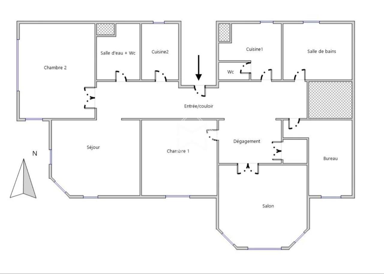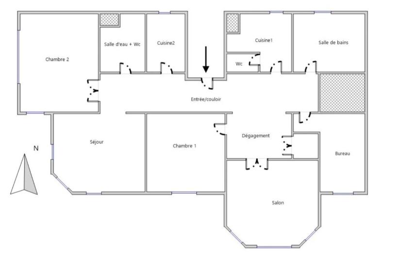 This property offers the possibility of being divided into two separate units: a two-room apartment of 50 m² with a 12 m² terrace and a three-room apartment of 80 m² with a 3 m² balcony.