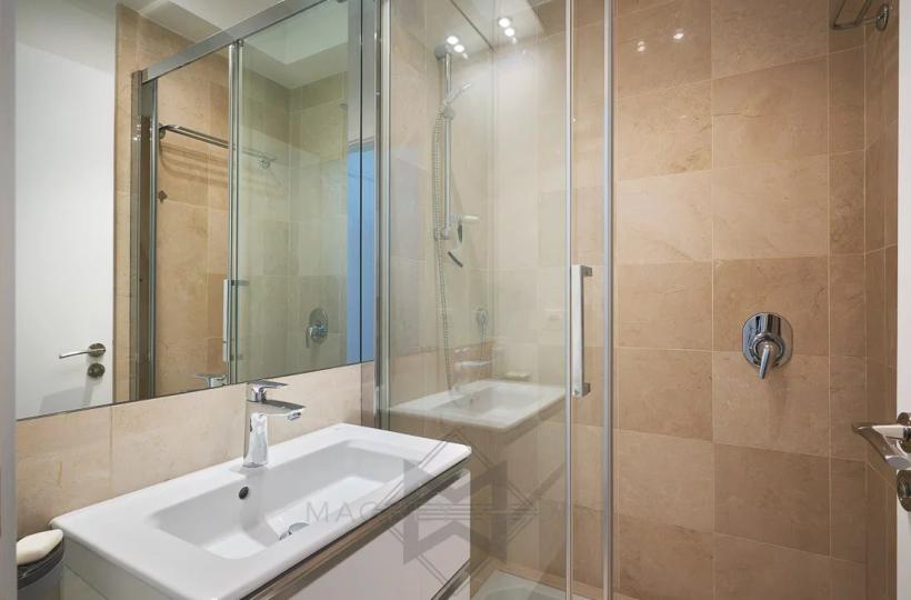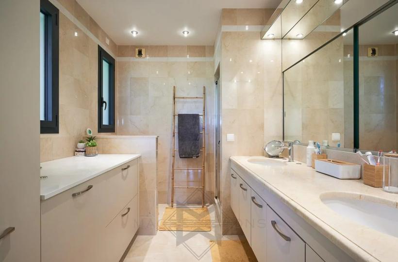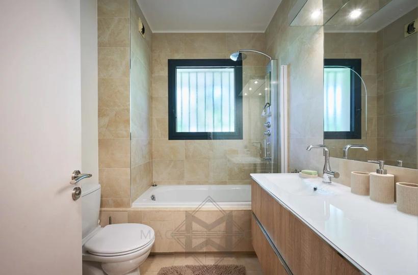 A master bedroom with sea view, a complete bathroom (bath, shower, toilet) storage cupboard