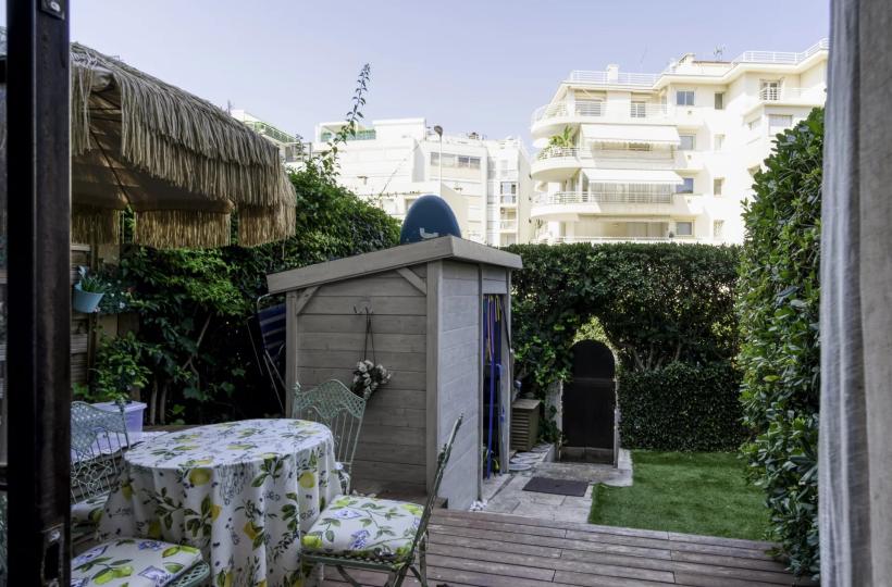 Outside, a magnificent private garden/terrace of approximately 120 m² with a sea view gives this apartment the charm of a real house. It benefits from direct access to the beaches, for a daily life with your feet in the water, between relaxation and panoramic views of the Lérins Islands.