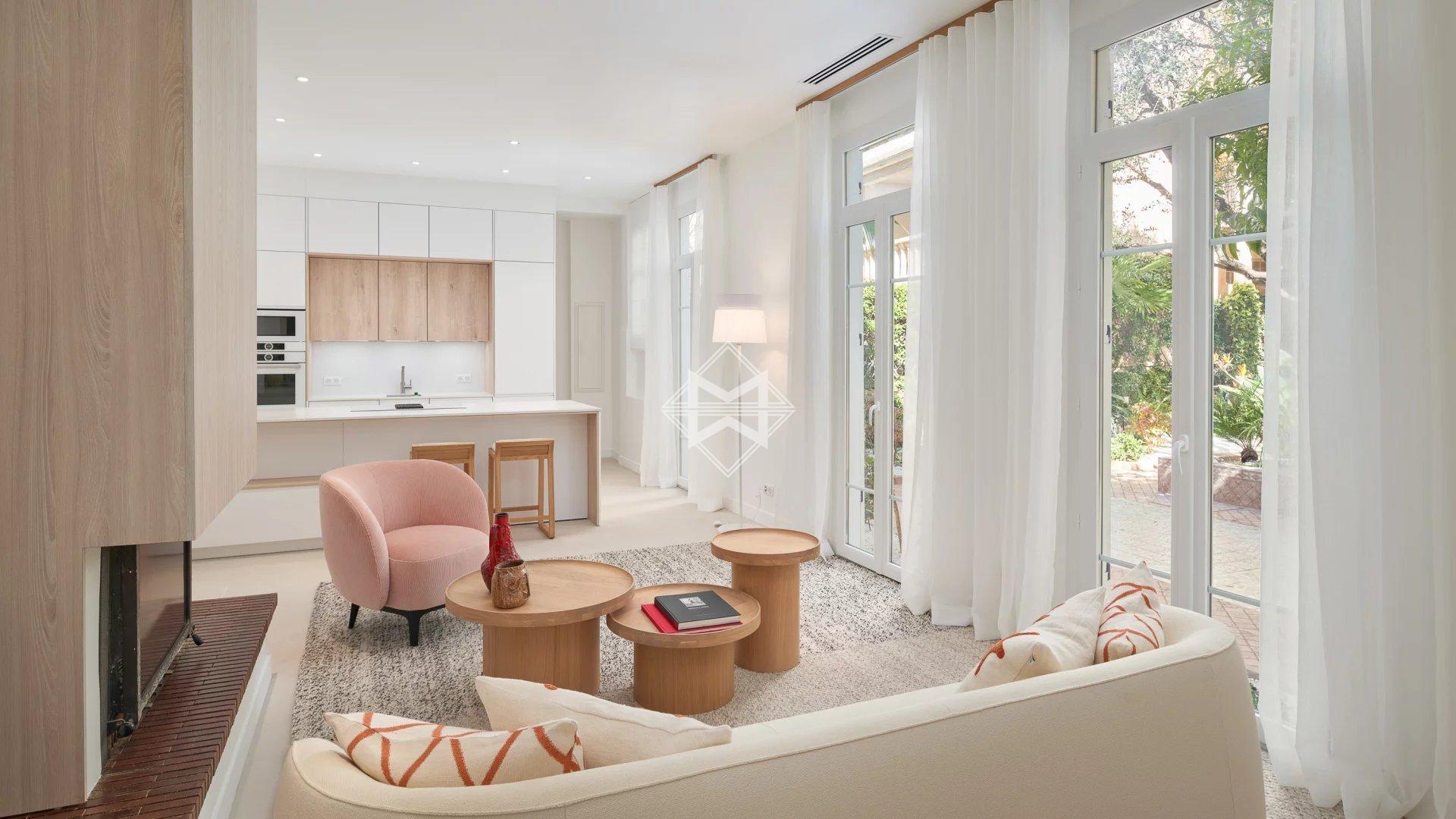 Unique - Cannes city center - immediate proximity to shops. Ideally located in the city center of Cannes, in absolute calm, out of sight, superb town house completely and recently renovated, bathed in light, it offers on 130 m2 of living space 3 bedrooms each with their own bathroom or shower, a beautiful equipped kitchen as well as a living room opening onto the garden / inner courtyard. Garage.
