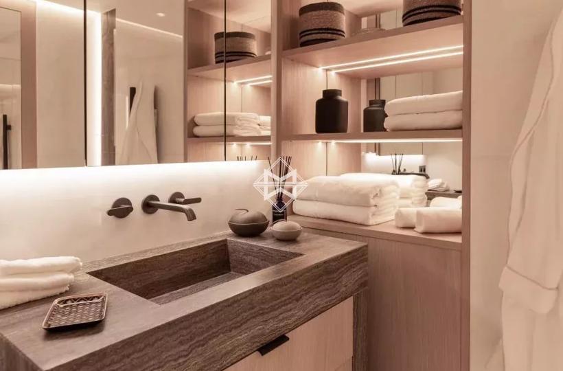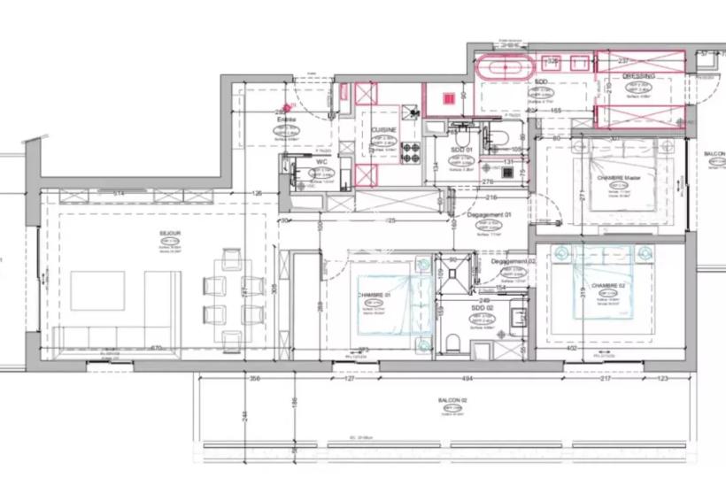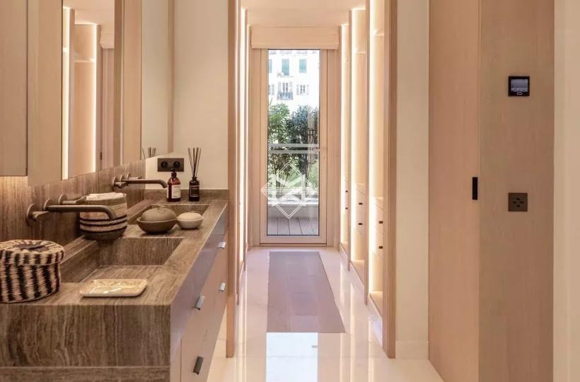 This 180 m² apartment boasts a generous living and dining room which opens onto a terrace from which to enjoy a view over the Mediterranean sea. Each of its 3 bedrooms comes with an ensuite bathroom and access to a terrace. It is sold with a cellar and a parking.
