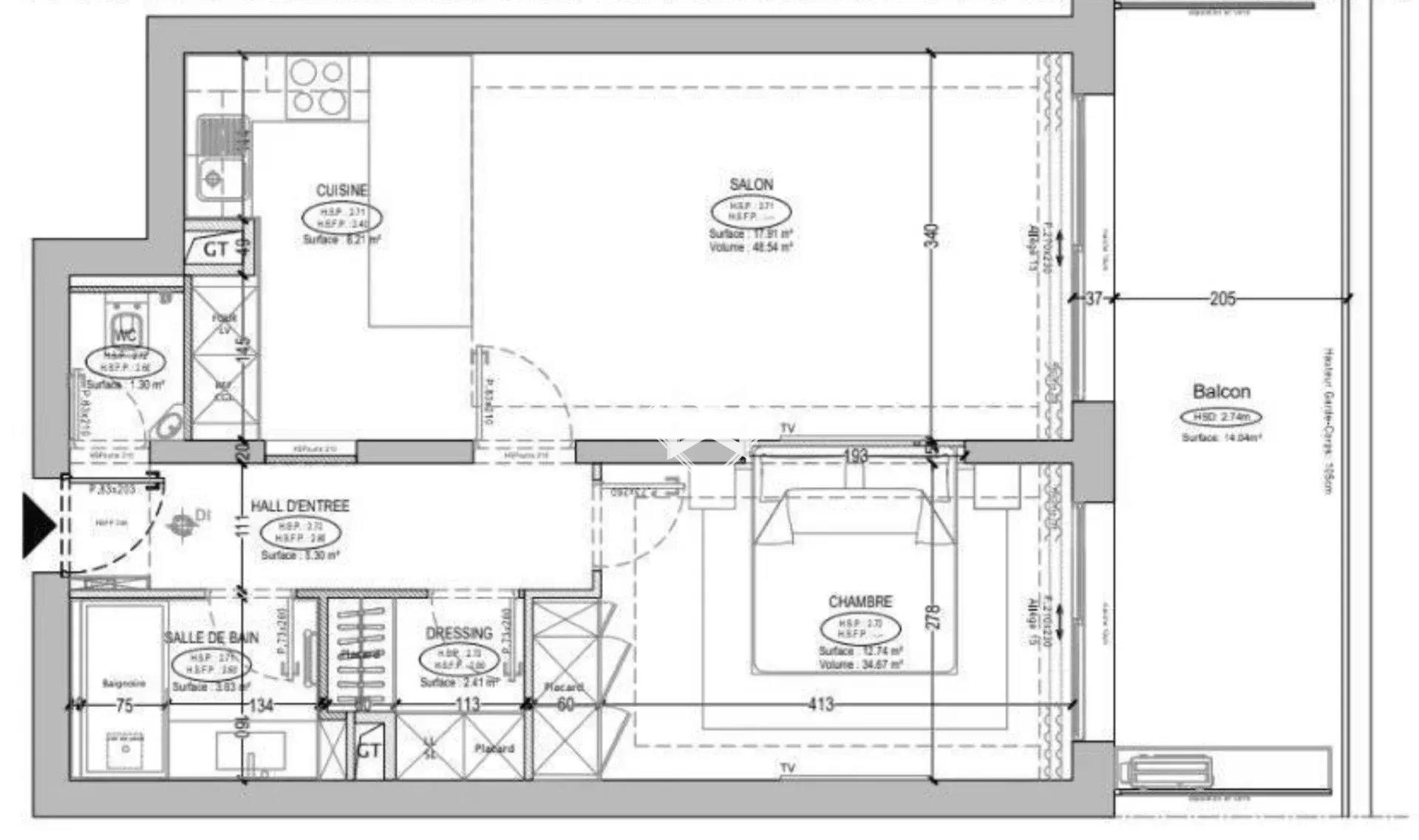 We offer for sale a 2-room apartment, completely redone, composed as follows: an entrance, a living room with an open fitted kitchen, a bedroom, a bathroom and a separate toilet.