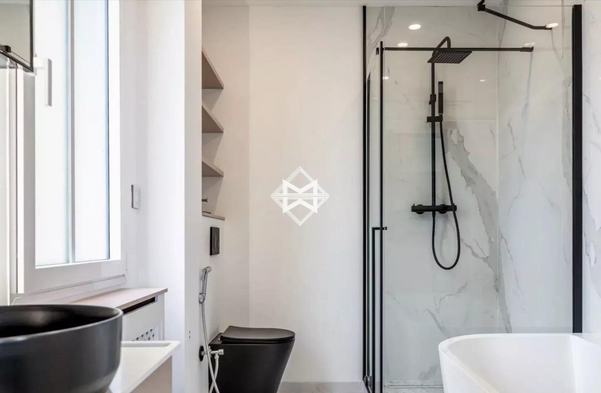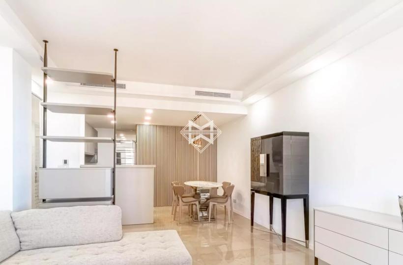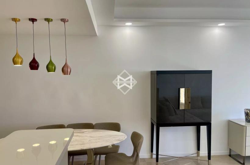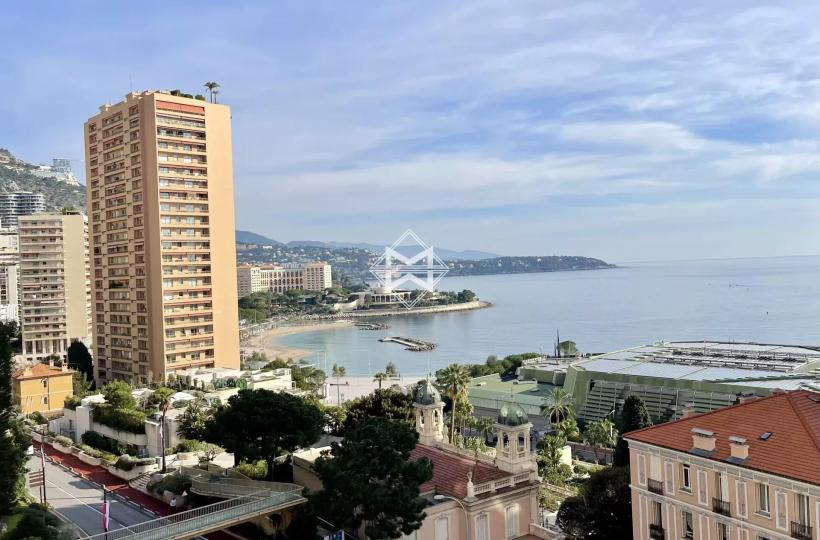 Ideally located between Boulevard des Moulins and the Larvotto beaches. Magnificent apartment of 128M2, located on a high floor, completely renovated. The property is composed of an entrance hall, a large equipped kitchen, a living room leading on to a terrace offering beautiful views of the sea and lots of light. The apartment has a master bedroom with en-suite bathroom and plenty of storage space, as well as two additional bedrooms with a shower room. The property has a parking space and a cellar.