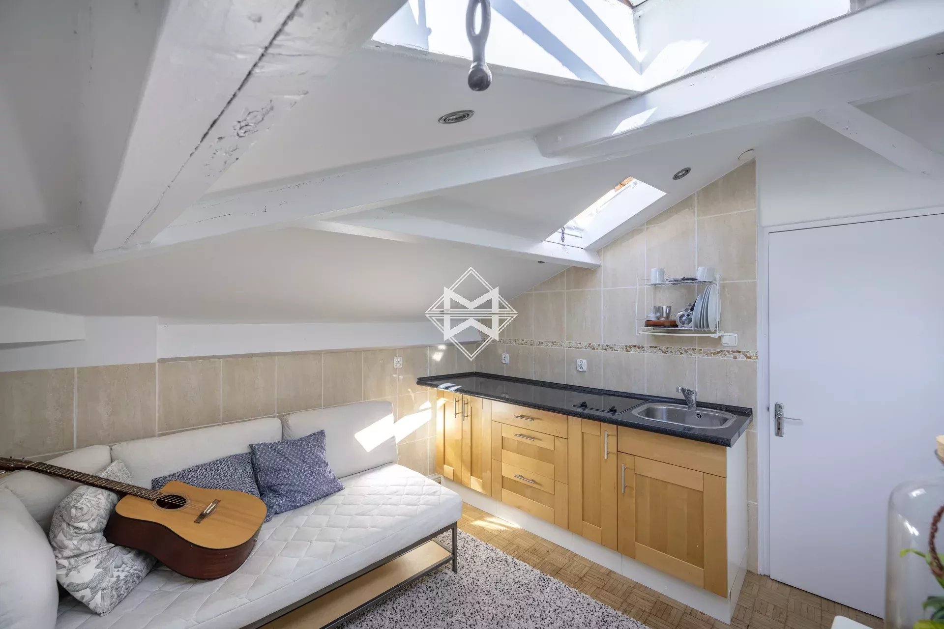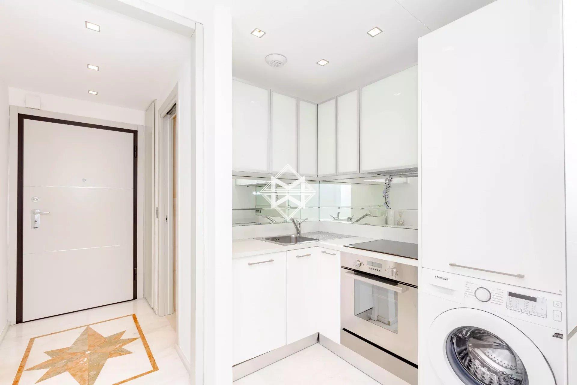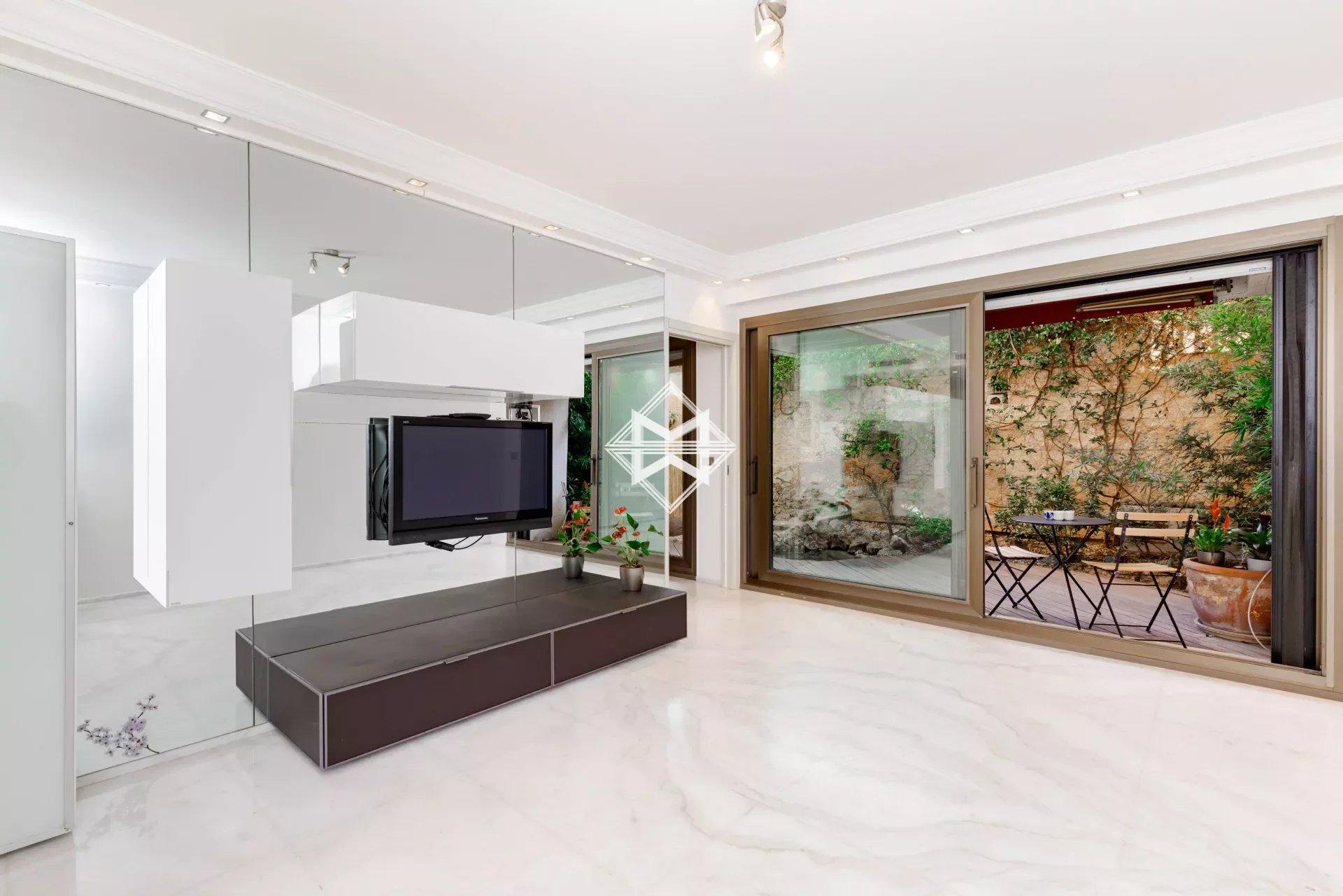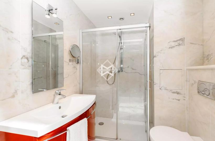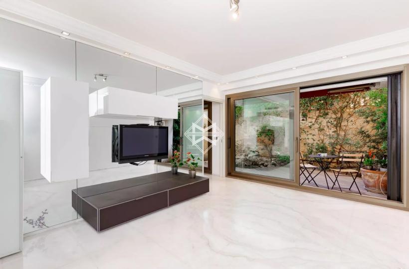 Golden Square. Very nice mixed-use apartment in a luxury residence. Very calm, this spacious apartment consists of a living-dining room, an open kitchen, a bedroom with shower room. A second small bedroom with shower room complete this atypical property. The apartment can be sold sold with a large parking for an additional price of 350 000 euros and benefits from a beautiful terrace with a coy carp pond. Access to the Mirabeau swimming pool is authorized