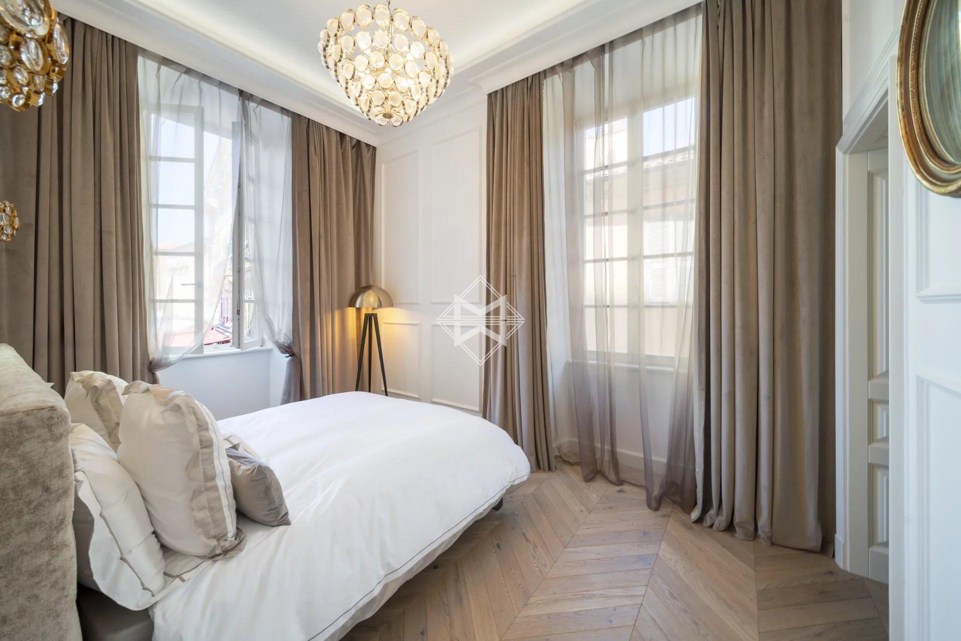 Located on Cours Saleya, this elegant 100 m² apartment enjoys a prime location within a beautiful Niçois building, just steps away from the Promenade des Anglais, Place Masséna, Cours Saleya, and its market. The apartment features an entrance leading to a fully equipped independent kitchen, a bright living room, two en-suite bedrooms, and a separate guest toilet. Completely renovated in 2023 with high-quality materials, it stands out with its superb finishes and quality features, such as air conditioning, high ceilings, and an exceptional location. It is worth noting that the artist Henri Matisse resided in this building which has been completely restored and rehabilitated into 2022. The apartment is sold furnished. Agency fees payable by vendor - Montant moyen de la quote-part de charges courantes 917 €/yearly