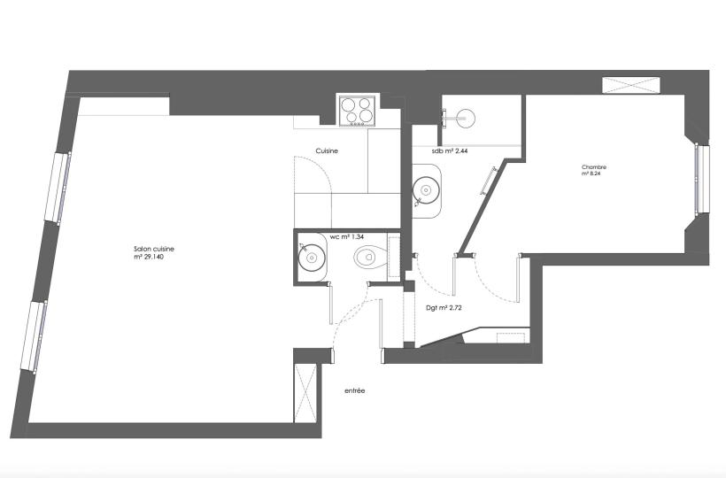 Close to Saint-Germain-des-Prés' most famous restaurants and shops. A bright new two-room apartment of 43.88m2.