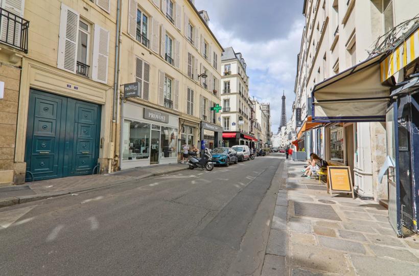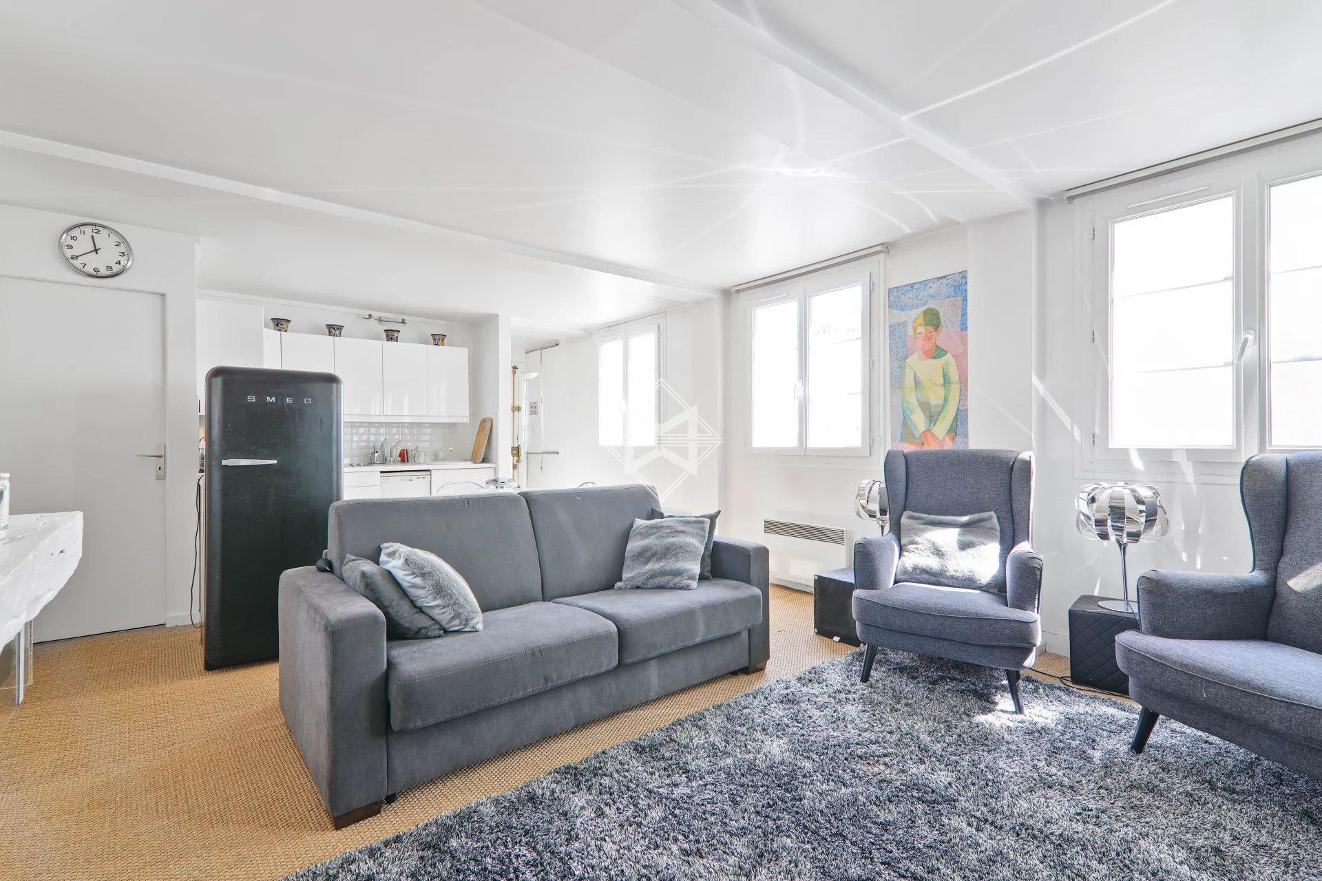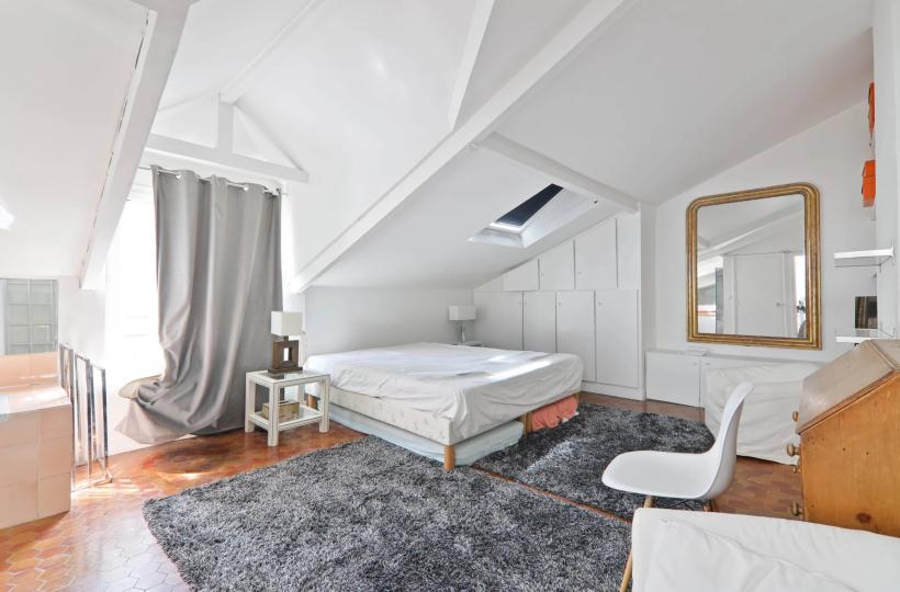 Ideally located on the 3rd floor of an old building without elevator, a duplex apartment of 59.26 m2 Carrez (66.93 m2 on the ground) in absolute calm on courtyard and not overlooked.