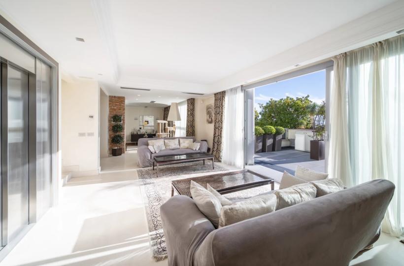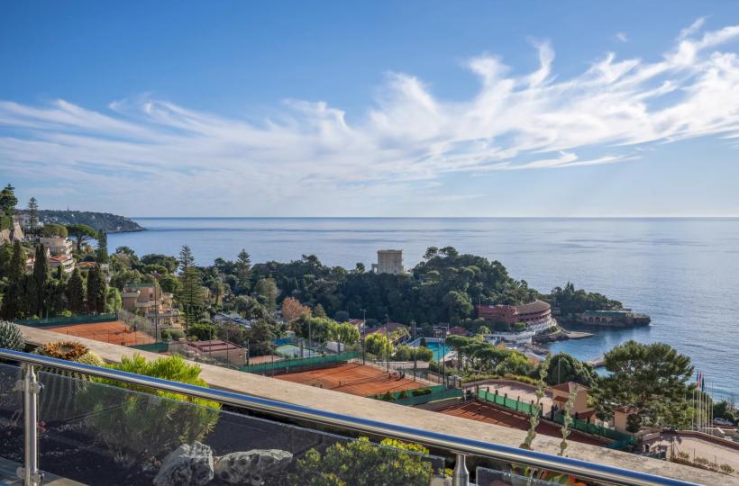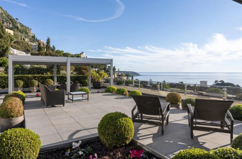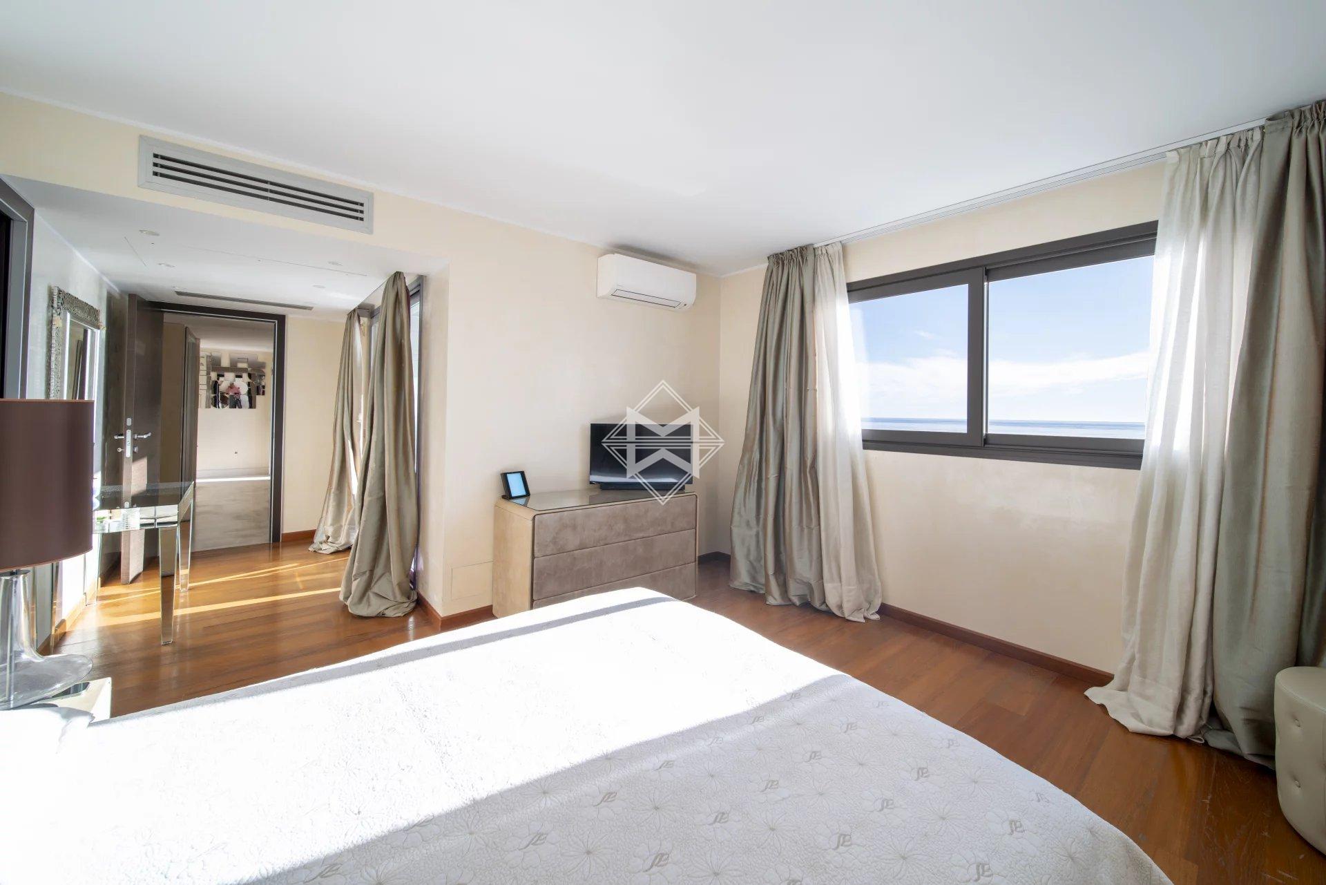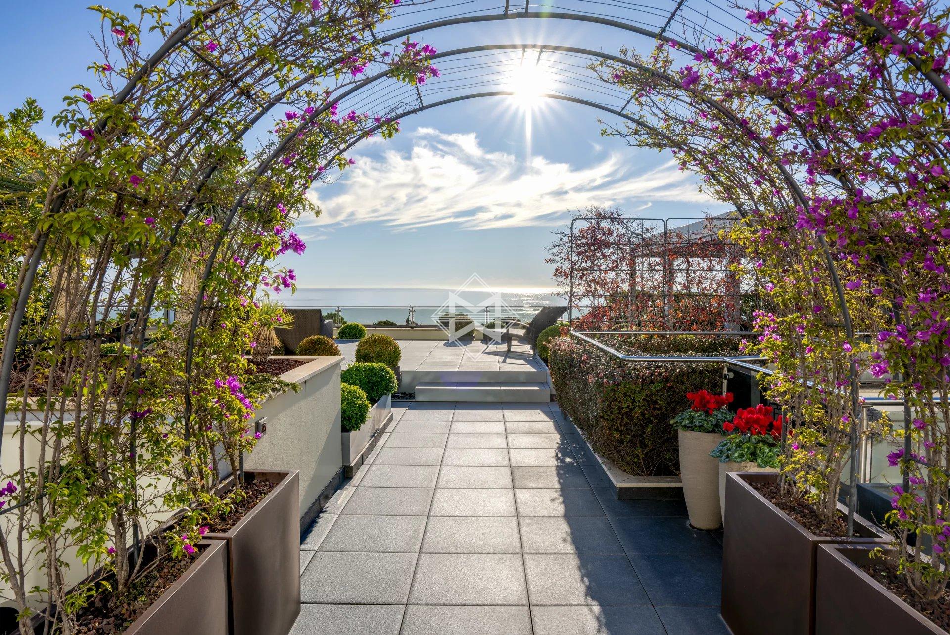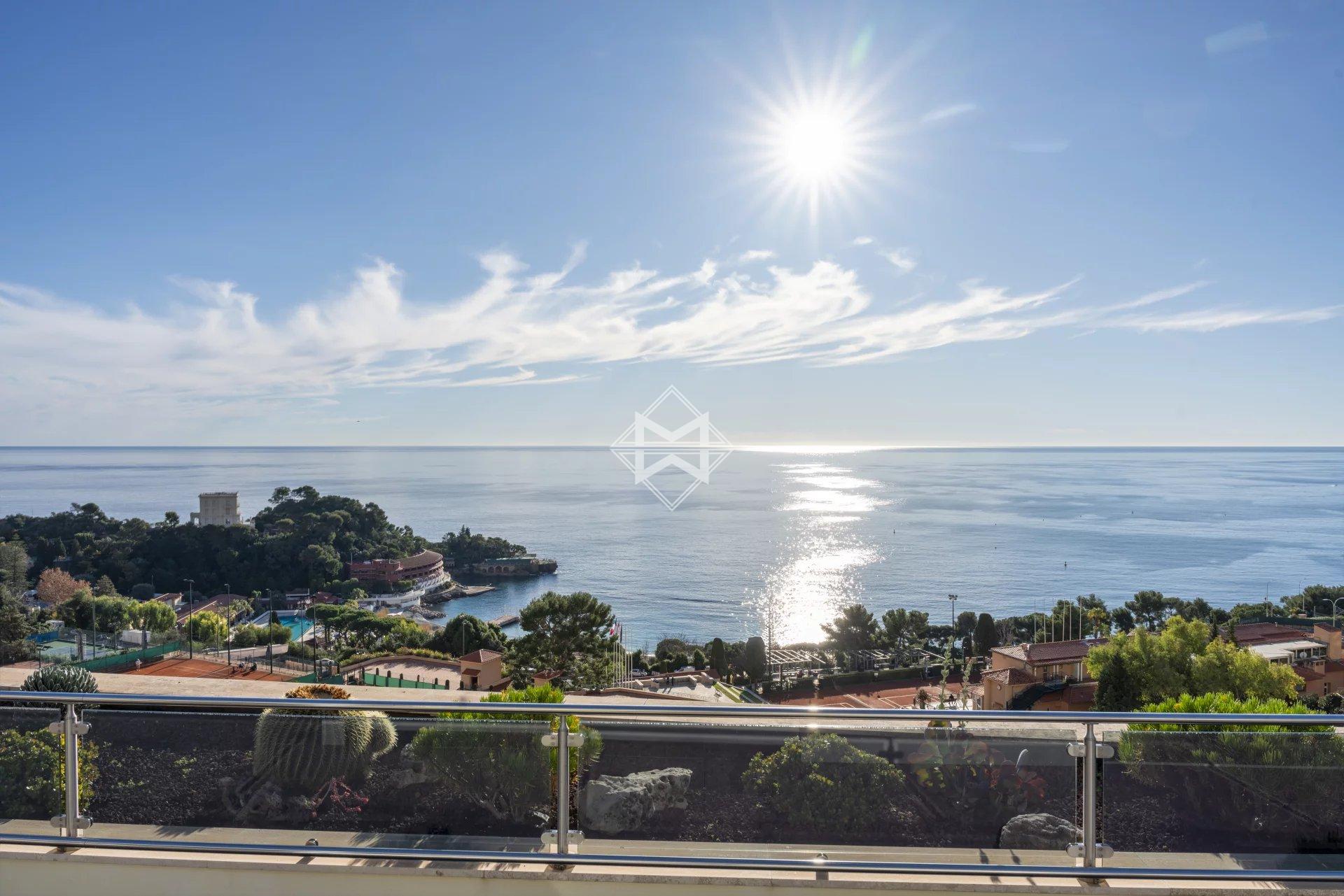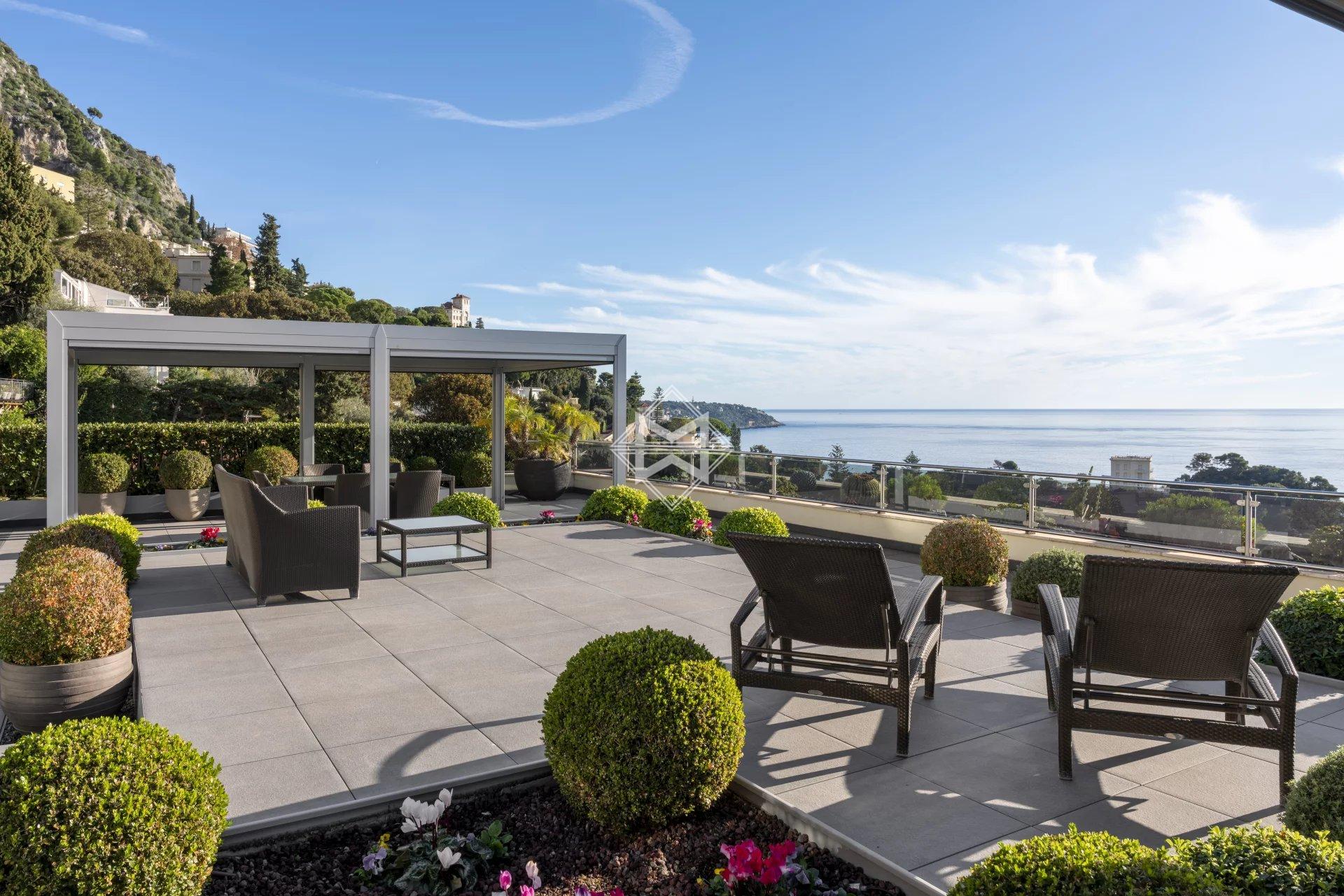 This penthouse, located in a prestigious residence on the border between Monaco and Roquebrune-Cap-Martin, enjoys an ideal location, close to the country club and just minutes from the beach. From the entrance, the apartment stands out for its bright spaces, with large bay windows opening onto an unobstructed view of the sea and Monte-Carlo. Beautiful terraces, spread over several levels, add an enjoyable dimension to this property. Spread across four floors, it consists, on the first level, of an entrance leading to a fully equipped independent kitchen, a spacious living-dining room opening onto a 130 m² terrace, a dressing room, and guest toilets. On the second level, there is a master suite with a balcony and sea view, and two bedrooms, each with a private shower room, one of which has a balcony. On the third level, a rooftop terrace offers a panoramic view of the bay and Cap Martin, perfect for relaxing or entertaining. The property also includes a spa, a cinema room, a closed garage, and four covered parking spaces. Agency fees payable by vendor