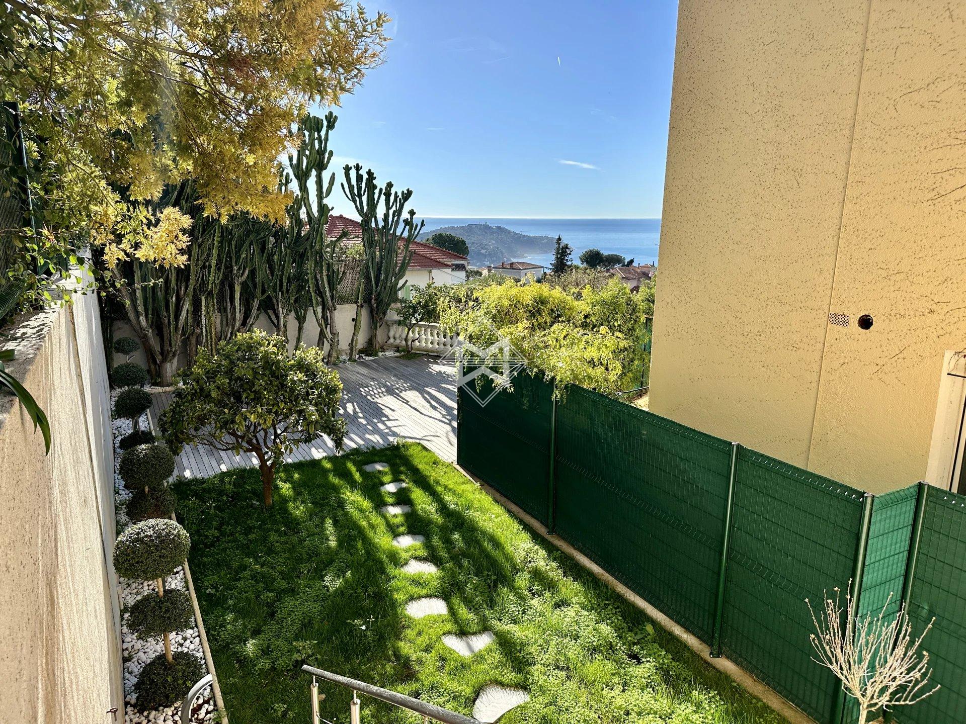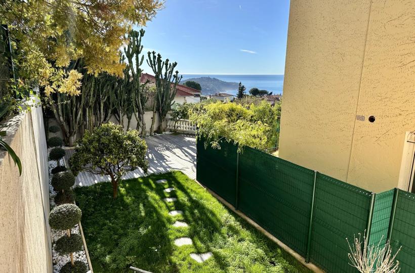 This beautiful garden-floor apartment is located in an intimate condominium of 2 flats in the Vinaigrier area, so sought-after for its stunning sea views. The fully renovated 78m2 flat comprises a living room with open-plan kitchen, an en suite bedroom with shower room and a second bedroom with separate shower room. The flat benefits from a lovely 43m2 terrace and a magnificent 127m2 garden with sea views, as well as 2 outdoor parking spaces. Agency fees payable by vendor - Nombre de lots dans la copropriété: 2