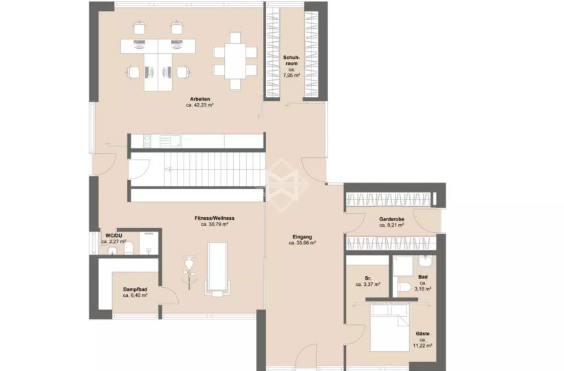 The rooftop terrace impresses with its spectacular view of Lake Wörthersee and provides ample space for an exclusive outdoor area. A wellness and fitness zone is also available.