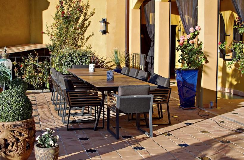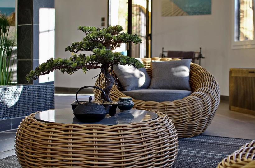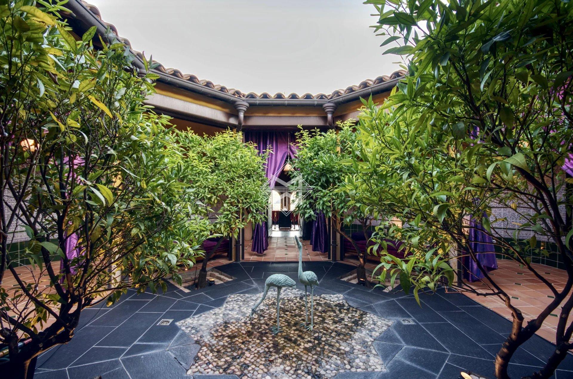 Blending Provençal and colonial inspirations, the main house boasts a living space of over 520 sqm, with spacious living areas, 6 bedrooms, a wellness area with a spa, a patio with a fountain, and a large swimming pool.