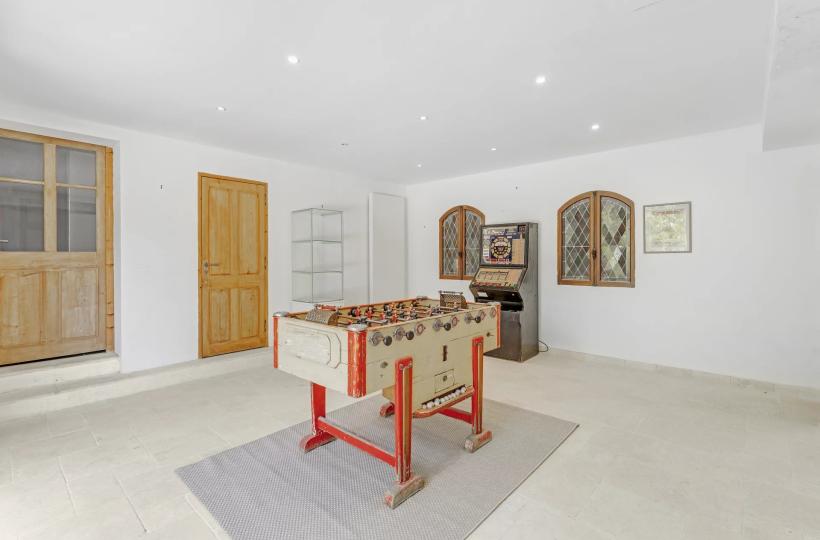 The lower level of the villa consists of a separate apartment with a living room, two en-suite bedrooms with bathrooms and walk-in closets, a games room, and a large storage room.