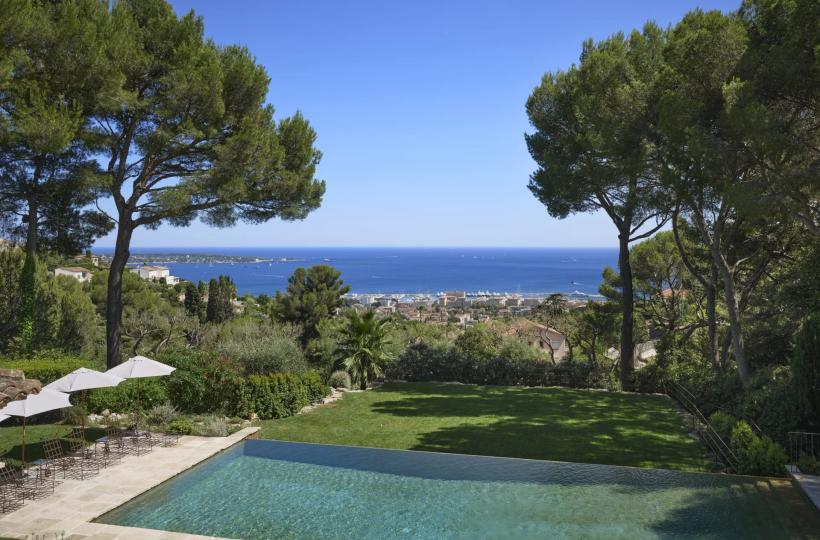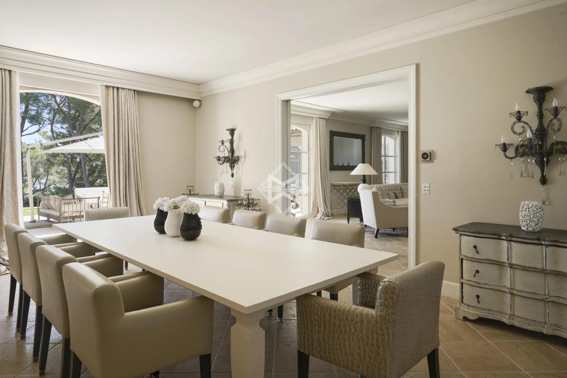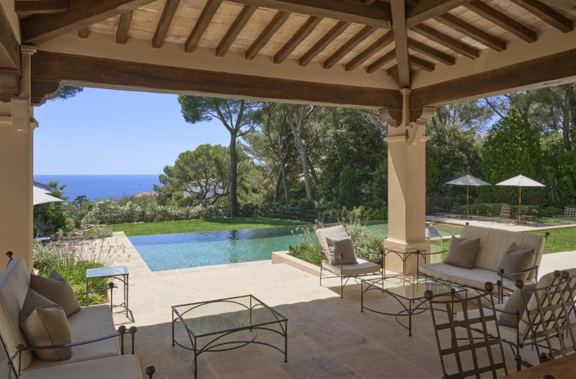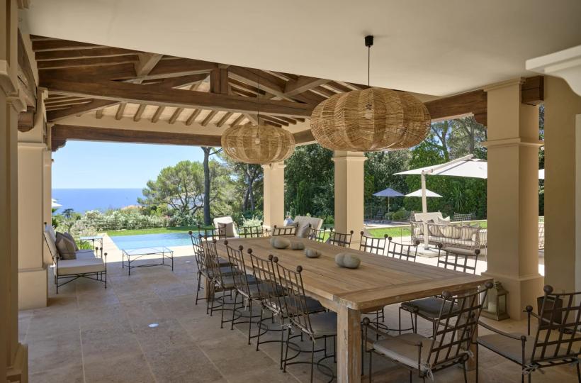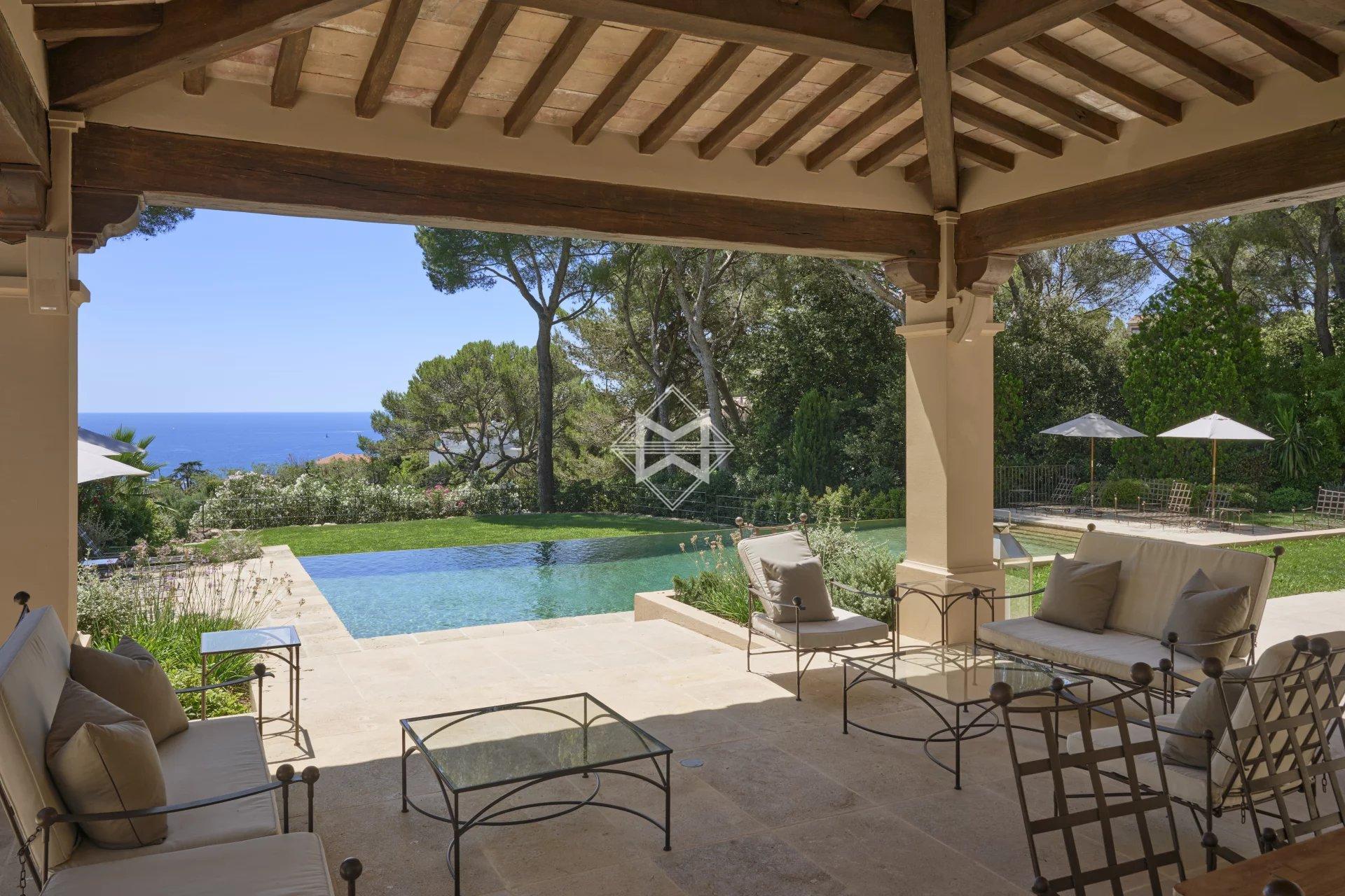 The main villa, with an impressive surface area of more than 800m², offers harmonious architecture and generous outdoor spaces: vast terraces bathed in light and a magnificent south-east-facing swimming pool, with uninterrupted views all the way to the sea.