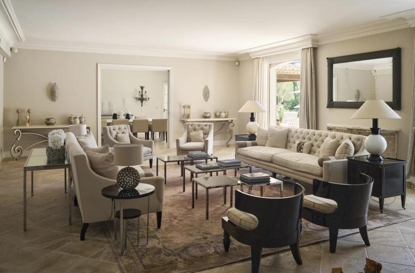 Upstairs, a vast hall leads to six en suite bedrooms, each with its own dressing room, including a sumptuous master suite with private terrace.