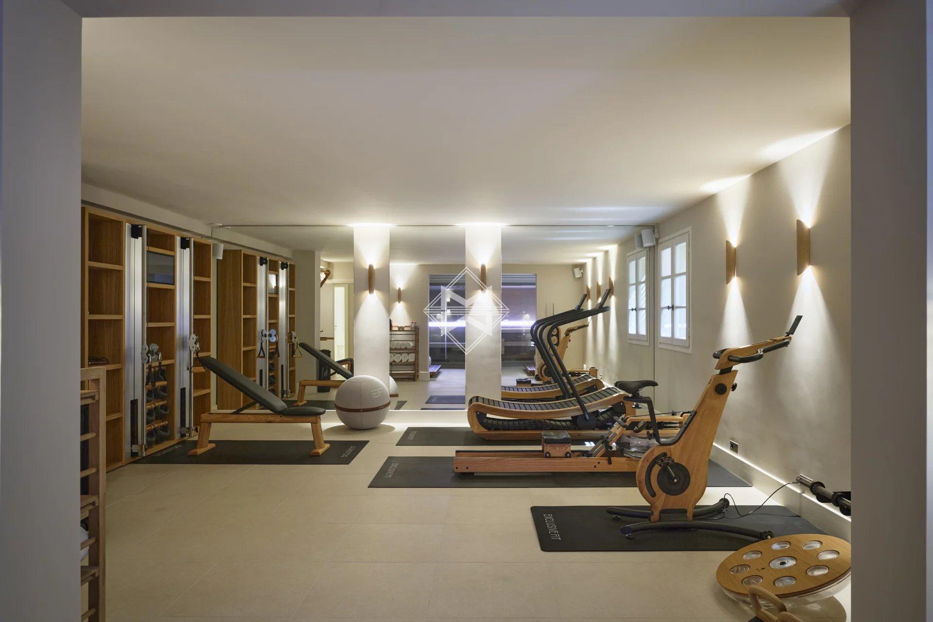 The basement, designed with comfort and well-being in mind, includes a cinema room, a fitness area, a spa with sauna and hammam, a laundry room, a linen room, wine cellar, as well as direct access to the garage and a shelter for three additional cars and numerous parking spaces.