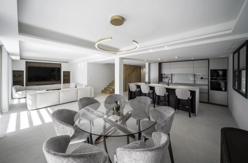 Luxuriously renovated villa of approximately 315,000 square feet, comprising on the ground floor a cathedral-style entrance hall, open-plan kitchen and living room, utility room, and en-suite bedroom.