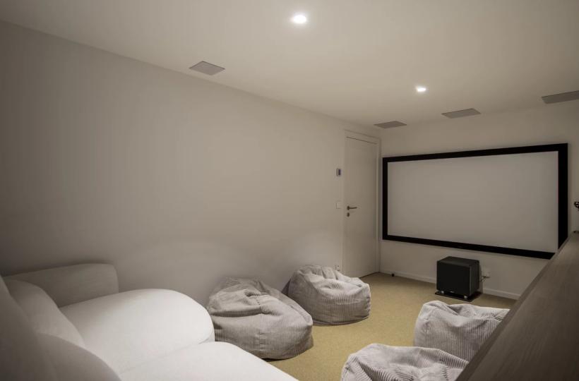 On the garden level: an apartment with separate entrance, kitchen, living room, en-suite bedroom, gym, and soundproofed cinema room.