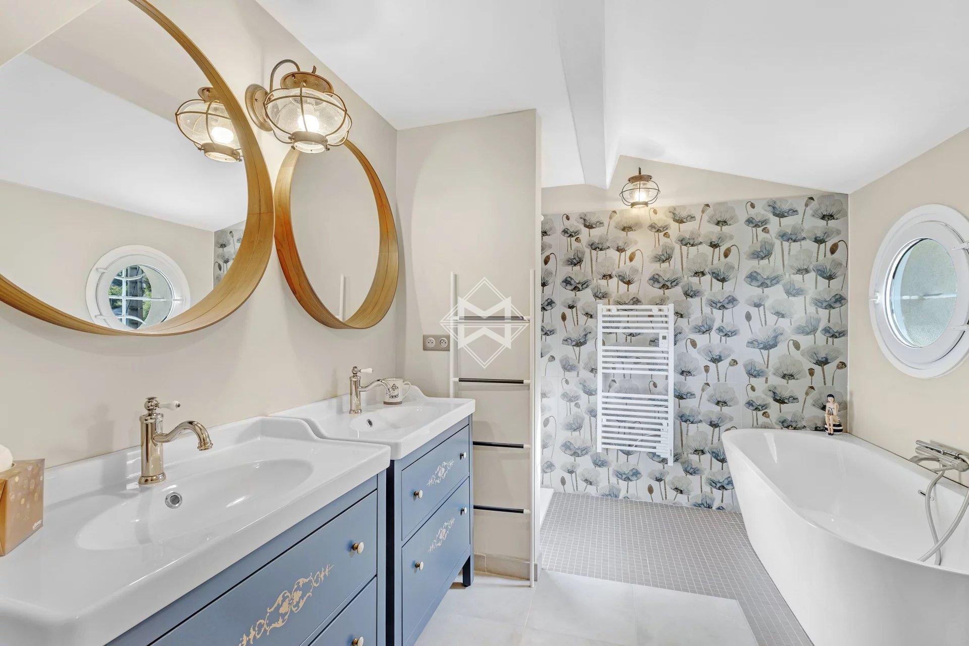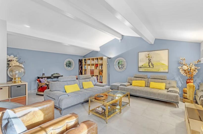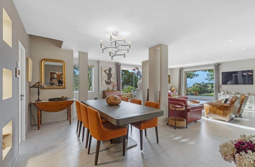 In the sought-after and protected Canebas area, this 270 m² villa sits on a flat plot of over 1,900 m², surrounded by lush Mediterranean vegetation. Here, Provençal charm meets contemporary comfort, offering a unique lifestyle experience with breathtaking views of the Mediterranean and its endless shades.