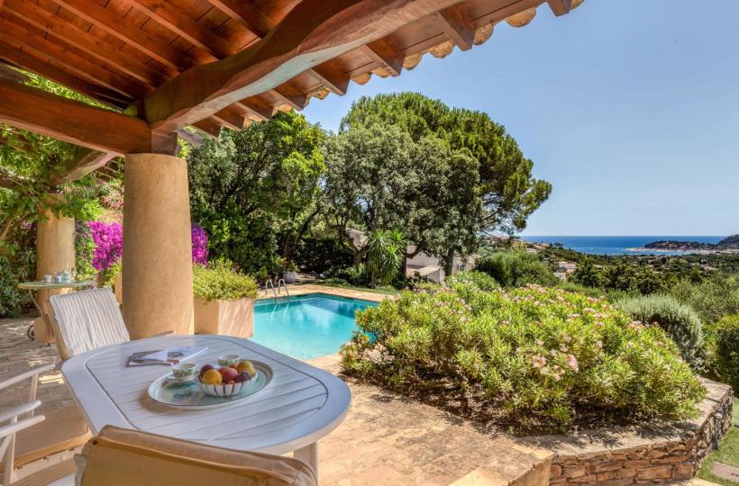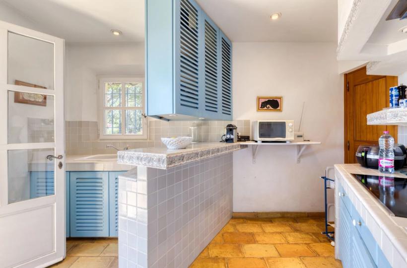 The covered terrace offers a barbecue area opening onto the swimming pool and its garden decorated with citrus fruits and other delicately maintained Mediterranean species.