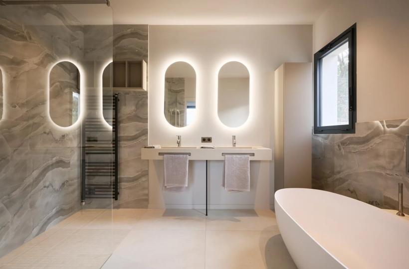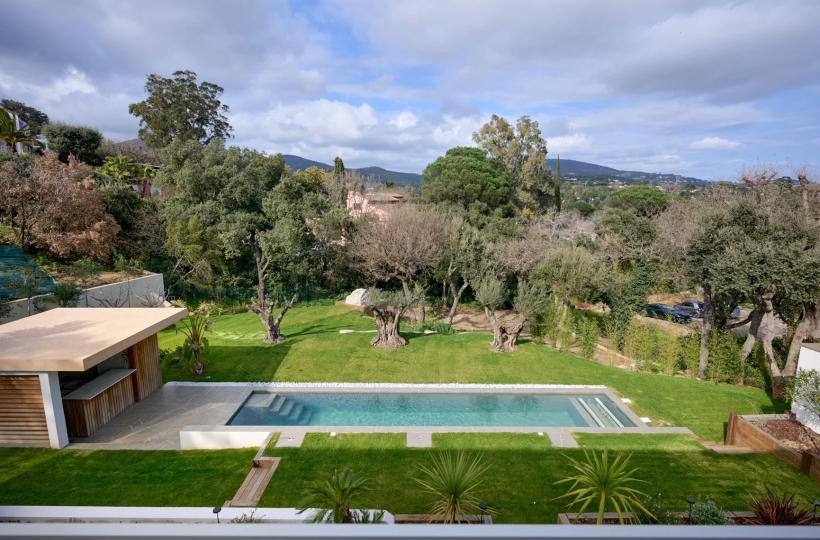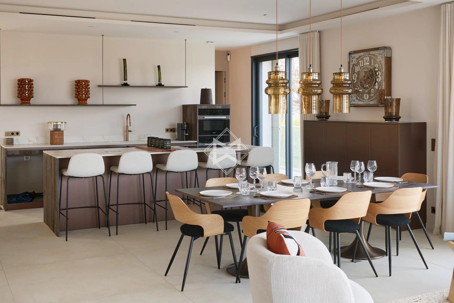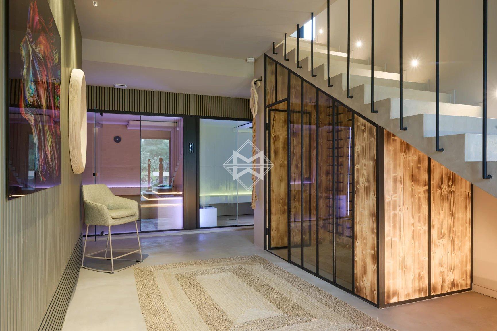 Combining the charm and authenticity of Provençal properties, the villa, built on two levels, has been designed with elegant and refined interiors, providing both comfort and modernity. It features a spacious living room, a dining area, and a fully equipped open kitchen. The villa includes five en-suite bedrooms, including a large master suite. Additional leisure spaces enhance the interior, including a wine cellar, a laundry room, a cinema room, as well as a hammam and sauna area.