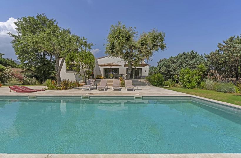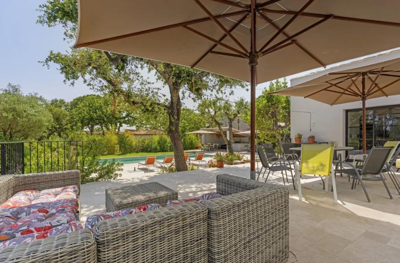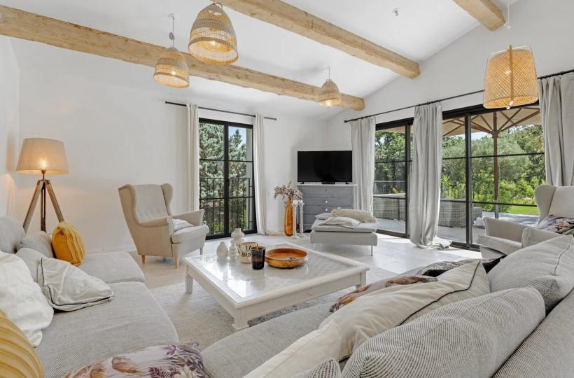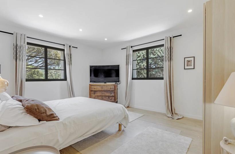 Nestled within a private and secure estate in Grimaud, just a 6-minute drive from the beaches, this stunning villa offers a dream setting for a holiday on the French Riviera. Designed to comfortably accommodate up to 12 guests, the house features 6 spacious bedrooms, each with its own en-suite bathroom, ensuring both comfort and privacy for everyone. The living areas include a cosy lounge dedicated to reading and relaxation, as well as a large, light-filled living room with a dining area and open-plan kitchen — ideal for sharing special moments with family or friends.