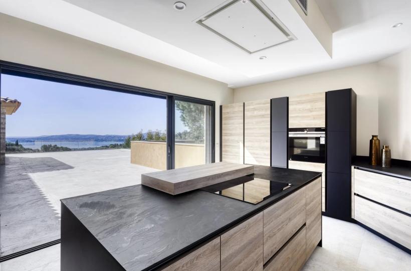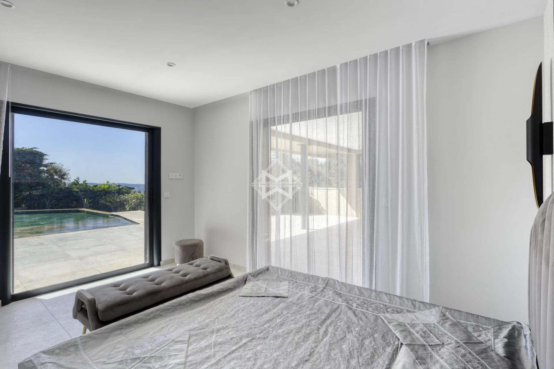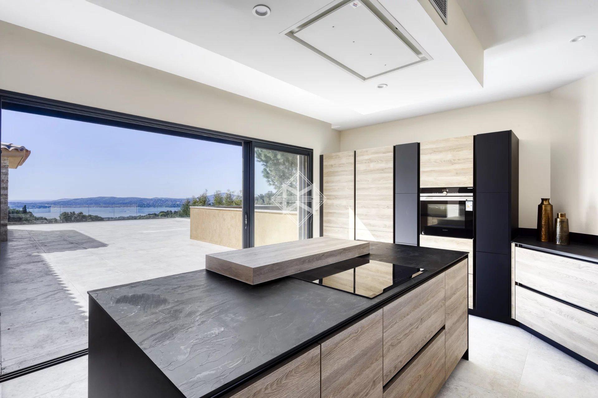 On the heights of Grimaud, in the prestigious gated and secure domain of Beauvallon Bartole, modern villa in a dominant position enjoying a beautiful panoramic view of the sea, nature and the Golfe de Saint-Tropez