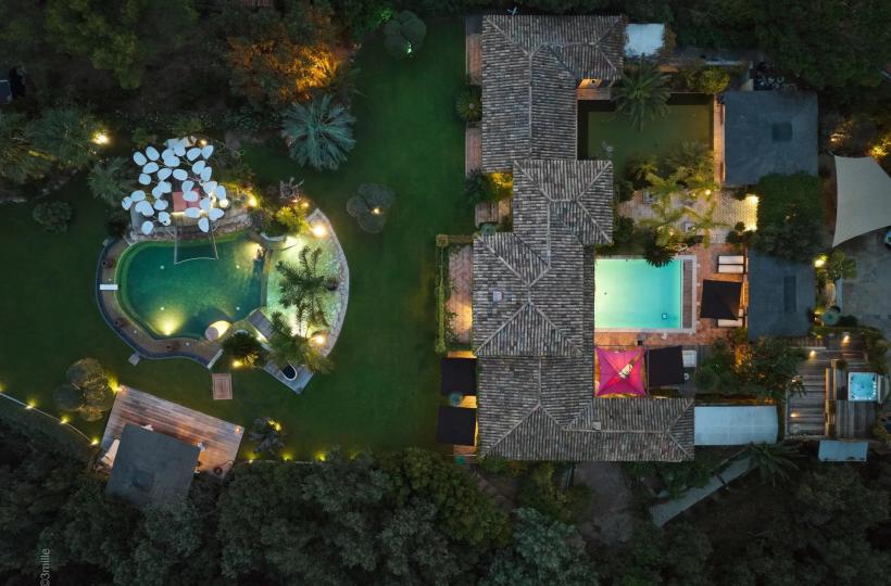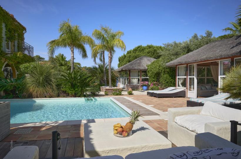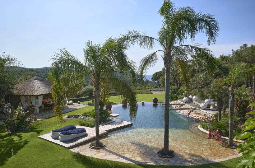Magnificent palm trees, birds of paradise, olive trees and other species adorning the two swimming pools, adorn this property. A heavenly address, in absolute calm, with its dreamy sea view.