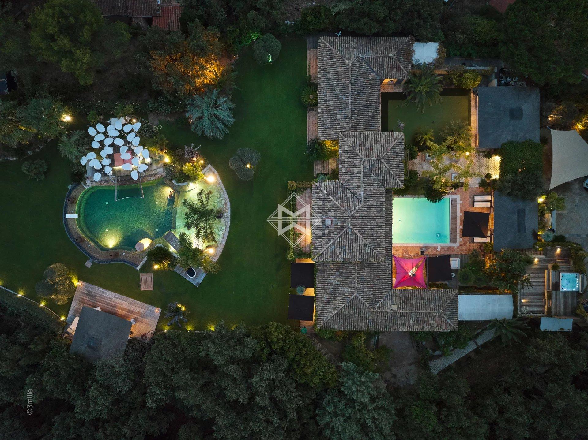 In a private domain, at the end of a dead end, without any vis-à-vis, this superb exotic-looking property, with an area of approximately 360 m2, is composed as follows: a beautifully wooded entrance presents a ground floor composed of 3 bedrooms and 3 bathrooms, a large living room and its open kitchen with laundry room.
