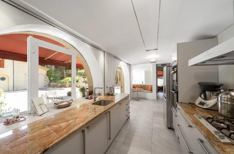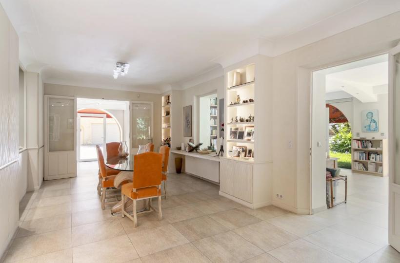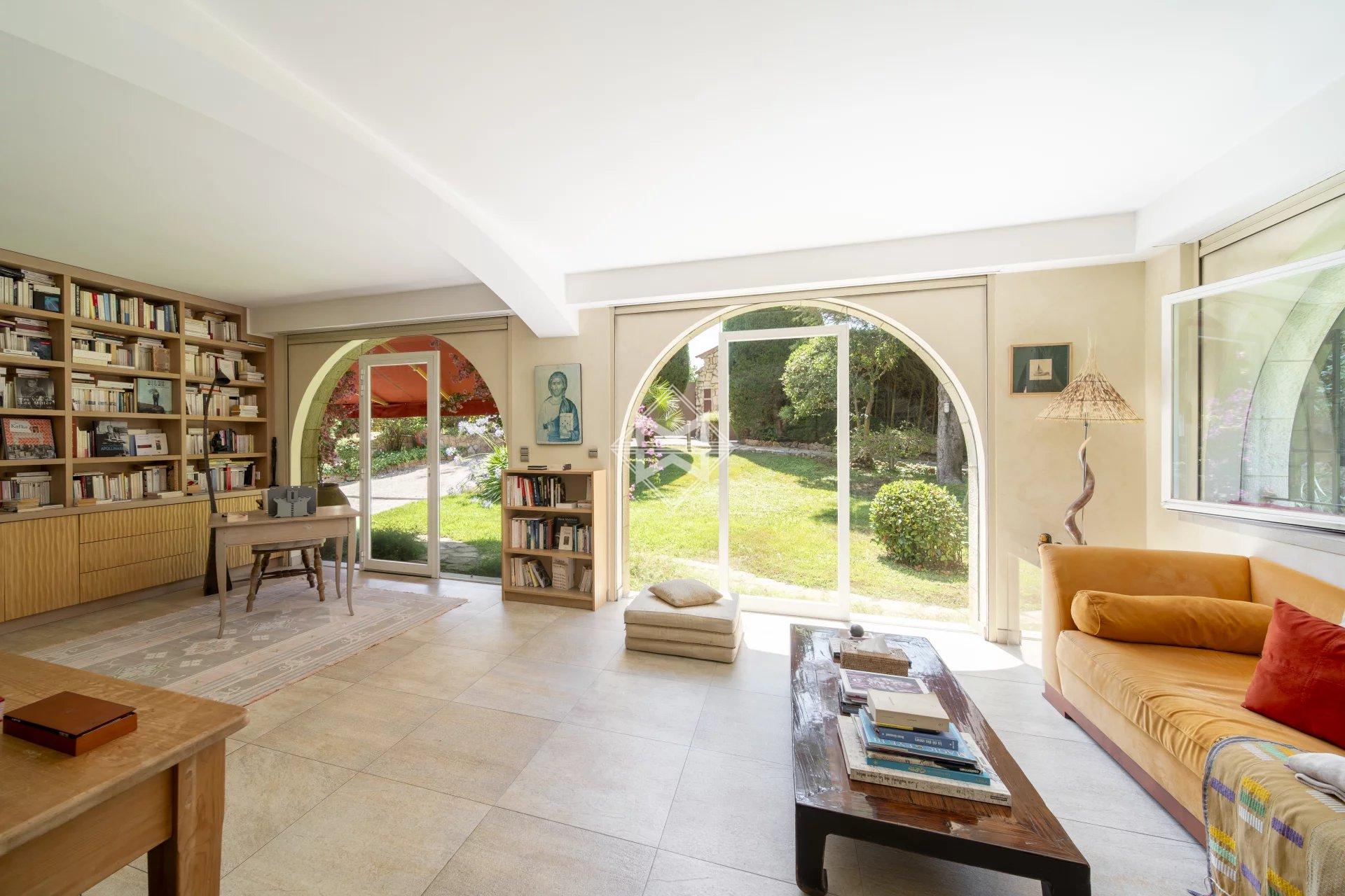 750 m from shops, 3 km from the Rue d'Antibes and beaches, this family villa with 285m² of living space and 370m² in total is quietly located in a residential area surrounded by greenery.