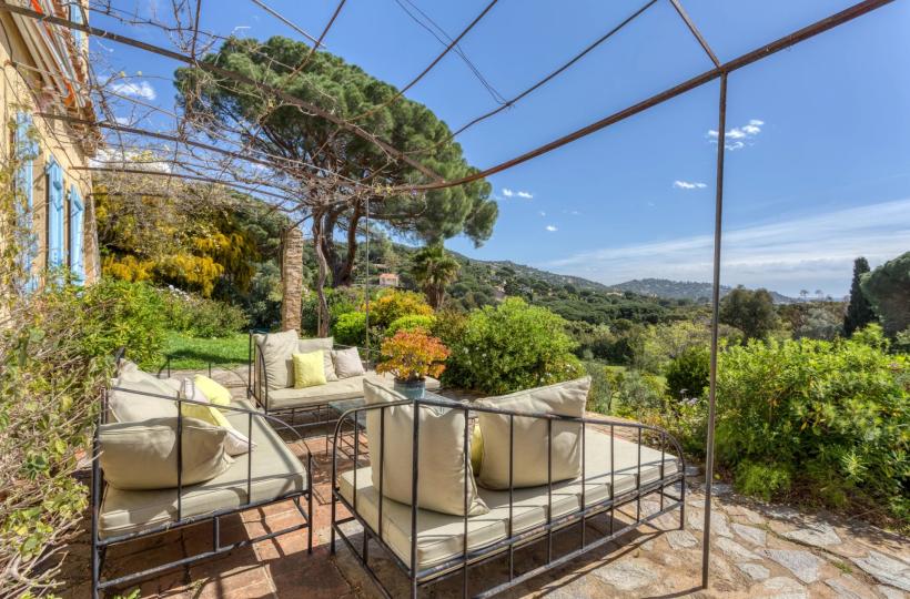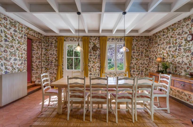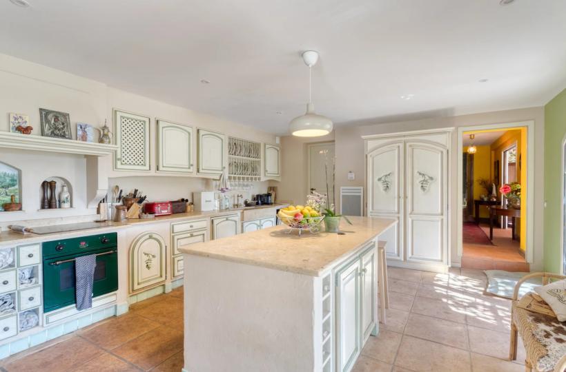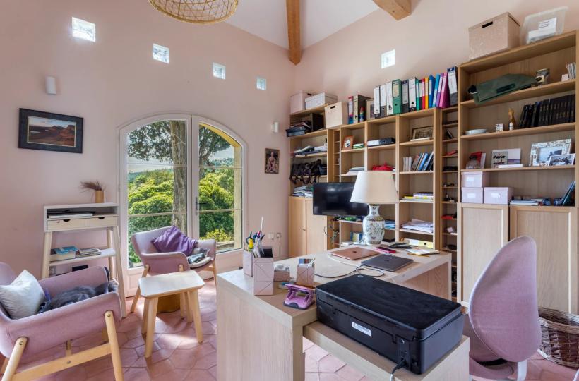 The main villa, with a surface area of approximately 300 sqm, features a warm and bright living room with a fireplace, a dining room, a spacious fully equipped kitchen opening onto a beautiful terrace, 6 bedrooms (including 2 suites and 1 master bedroom), 4 shower rooms, as well as an office and a hammam.