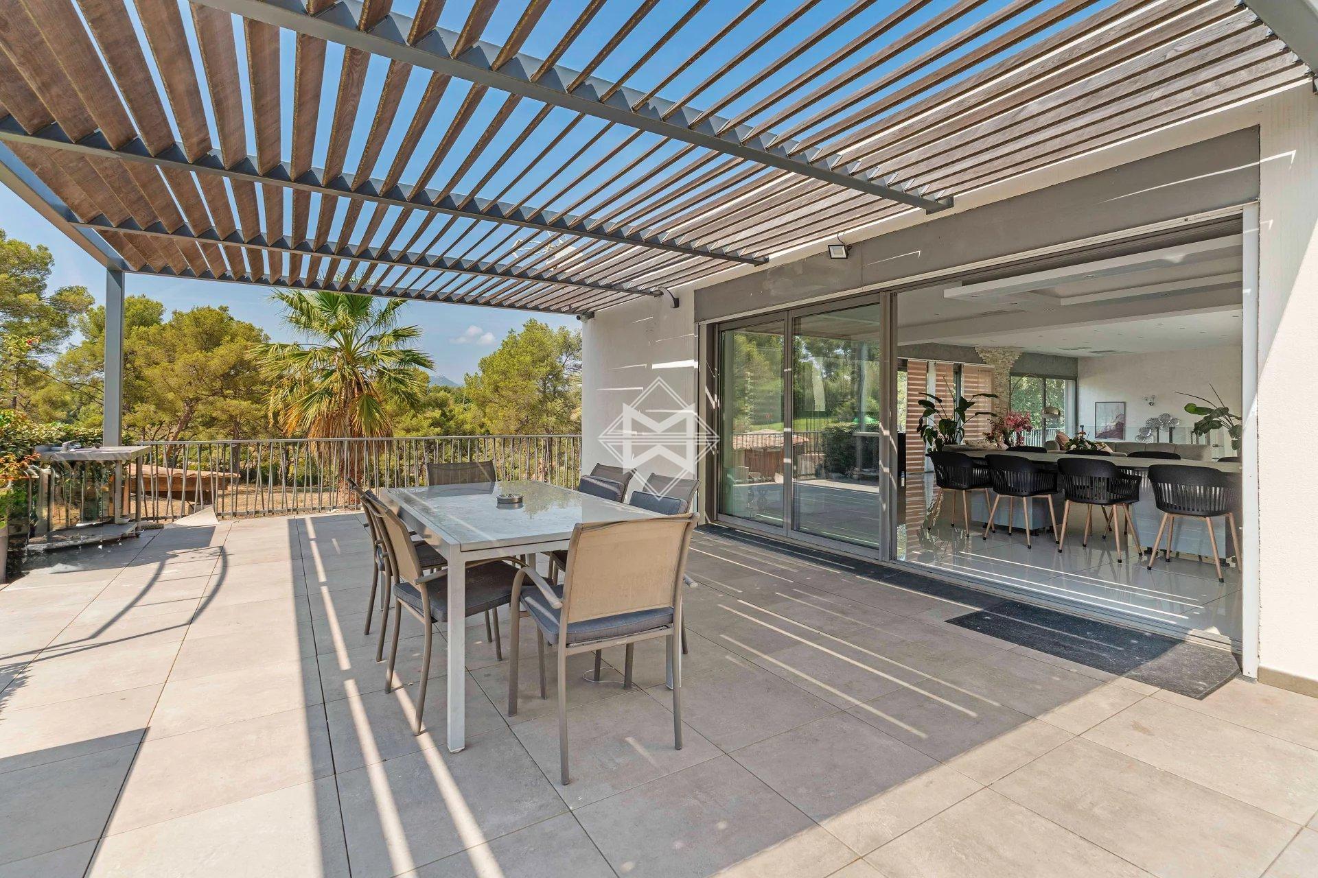 Outdoors, everything invites relaxation: two sleekly designed pools, a large sun-drenched terrace, automatic irrigation supplied by a private well, a closed garage, three carports, and plenty of parking.