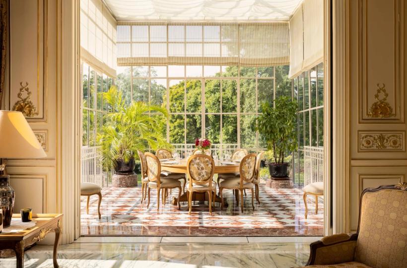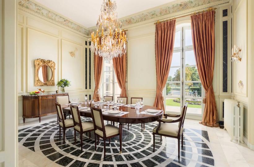 Nestled in the heart of the lush Parc des Ibis (Le Vésinet), just 20 minutes from Paris, this palace inspired by the Grand Trianon is a listed historic monument. It offers 2,000 square meters of family and leisure space on the basement, garden and first floors. The location of the Palais Rose is exceptional, so close is it to several major landmarks. Owners can enjoy Paris to the full, as if they were living there.