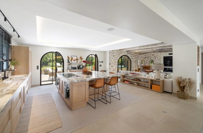 This 5-bedroom villa has recently been renovated in a style that blends authenticity and modernity. The charm of the stone and wood is enhanced by the refined, contemporary interior design.