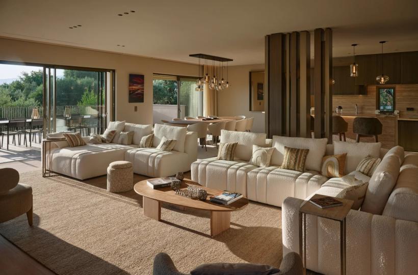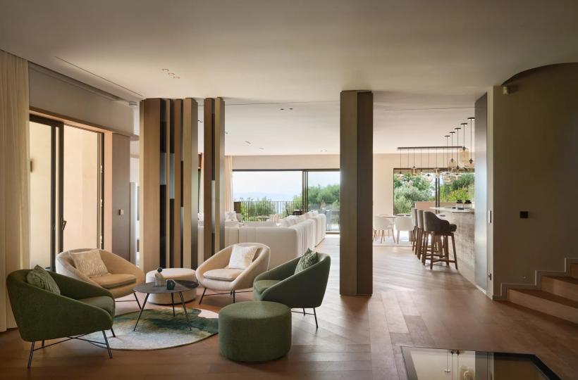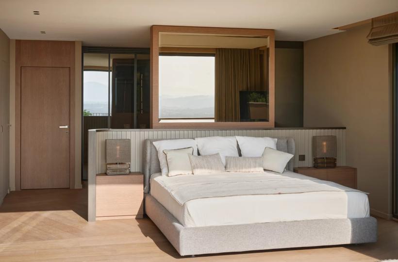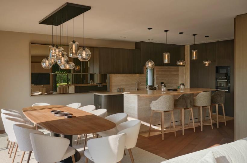 The villa features 7 en-suite bedrooms, each with its own unique identity. The interiors have been meticulously designed, using high-quality natural materials such as oak, stone, and brass to create a warm and sophisticated atmosphere.