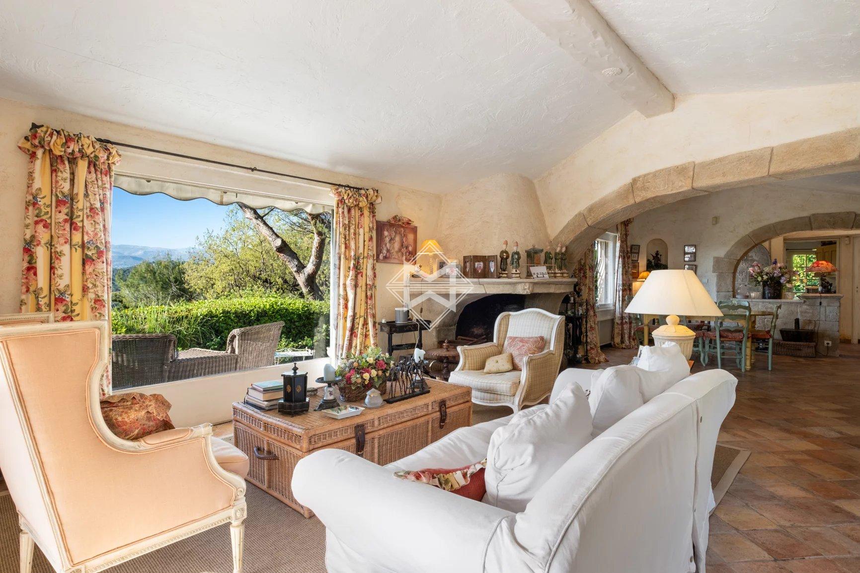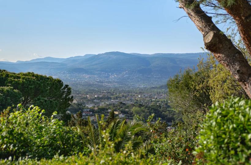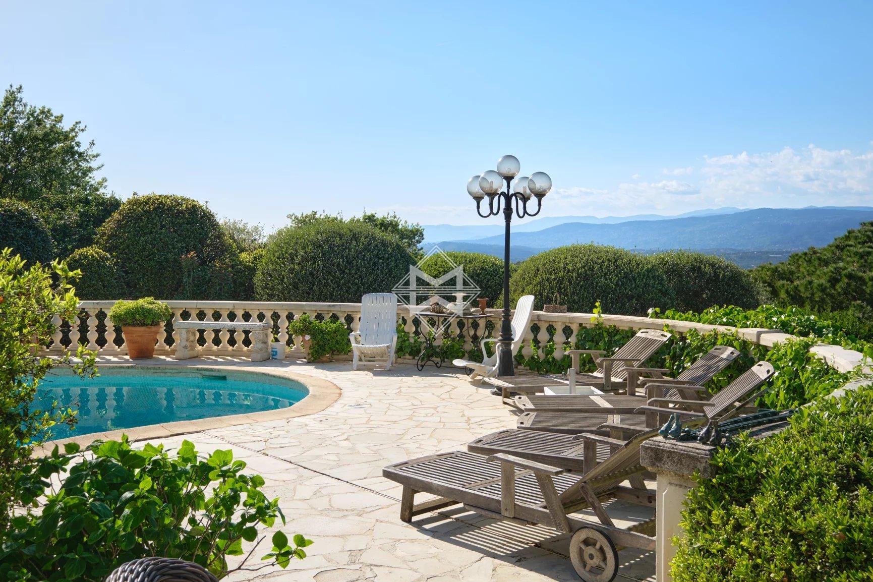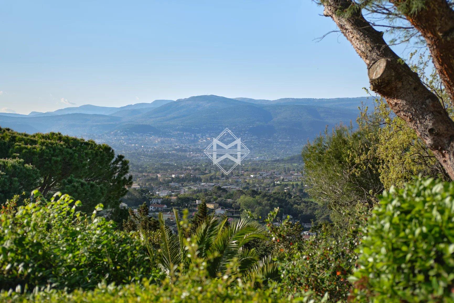 At the end of an elegant driveway the villa positioned on top of a lush garden of 2500m² with fantastic open views of the green hills of l’esterel with beautiful sunsets.