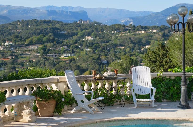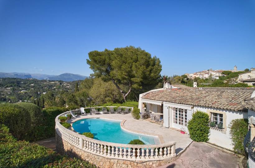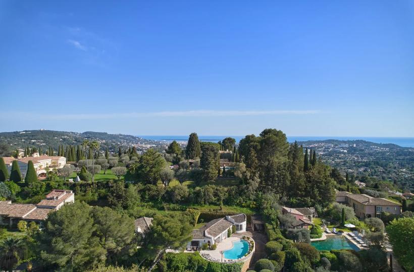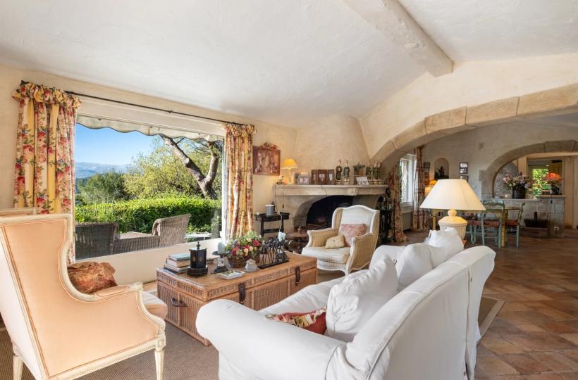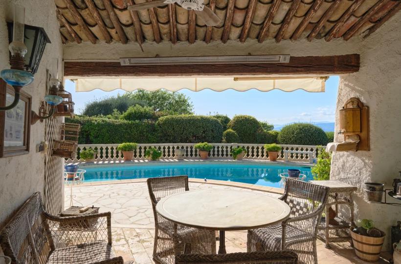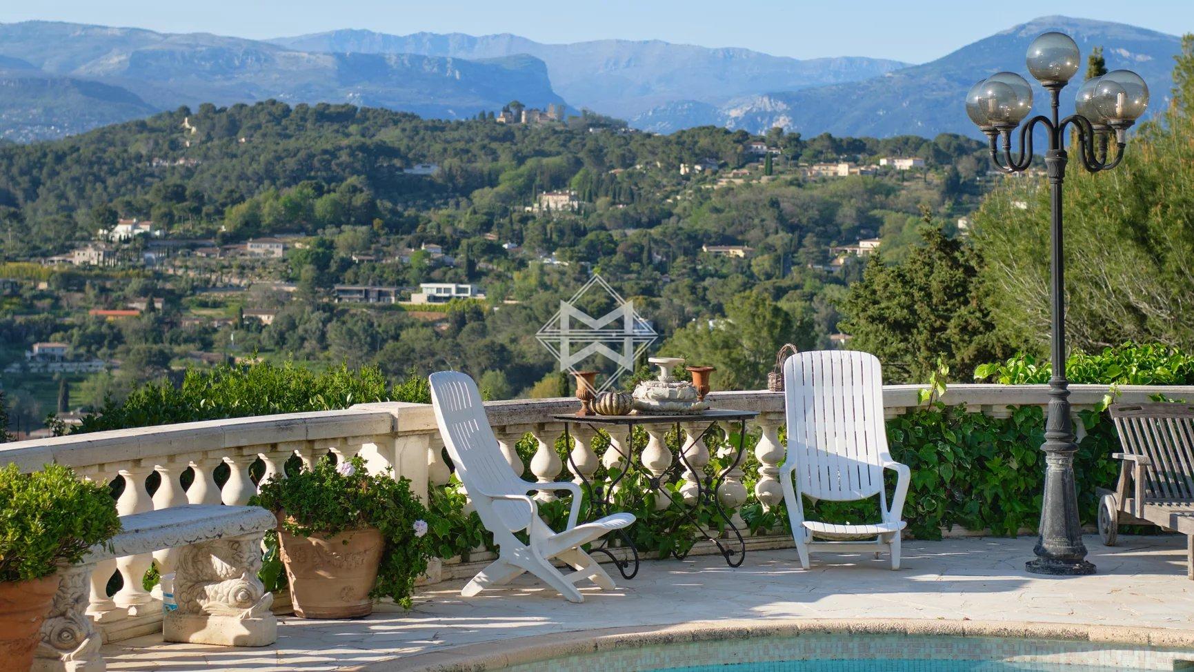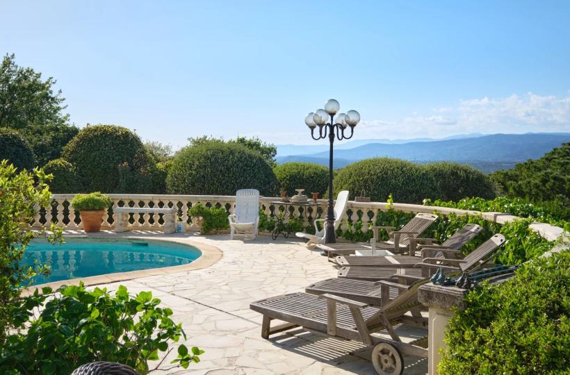 At the end of an elegant driveway the villa positioned on top of a lush garden of 2500m² with fantastic open views of the green hills of l’esterel with beautiful sunsets.