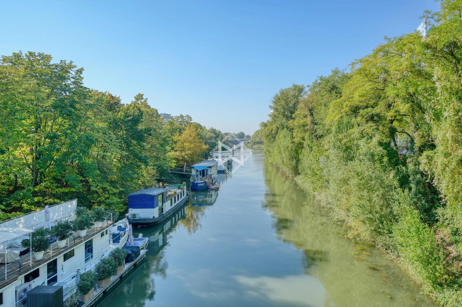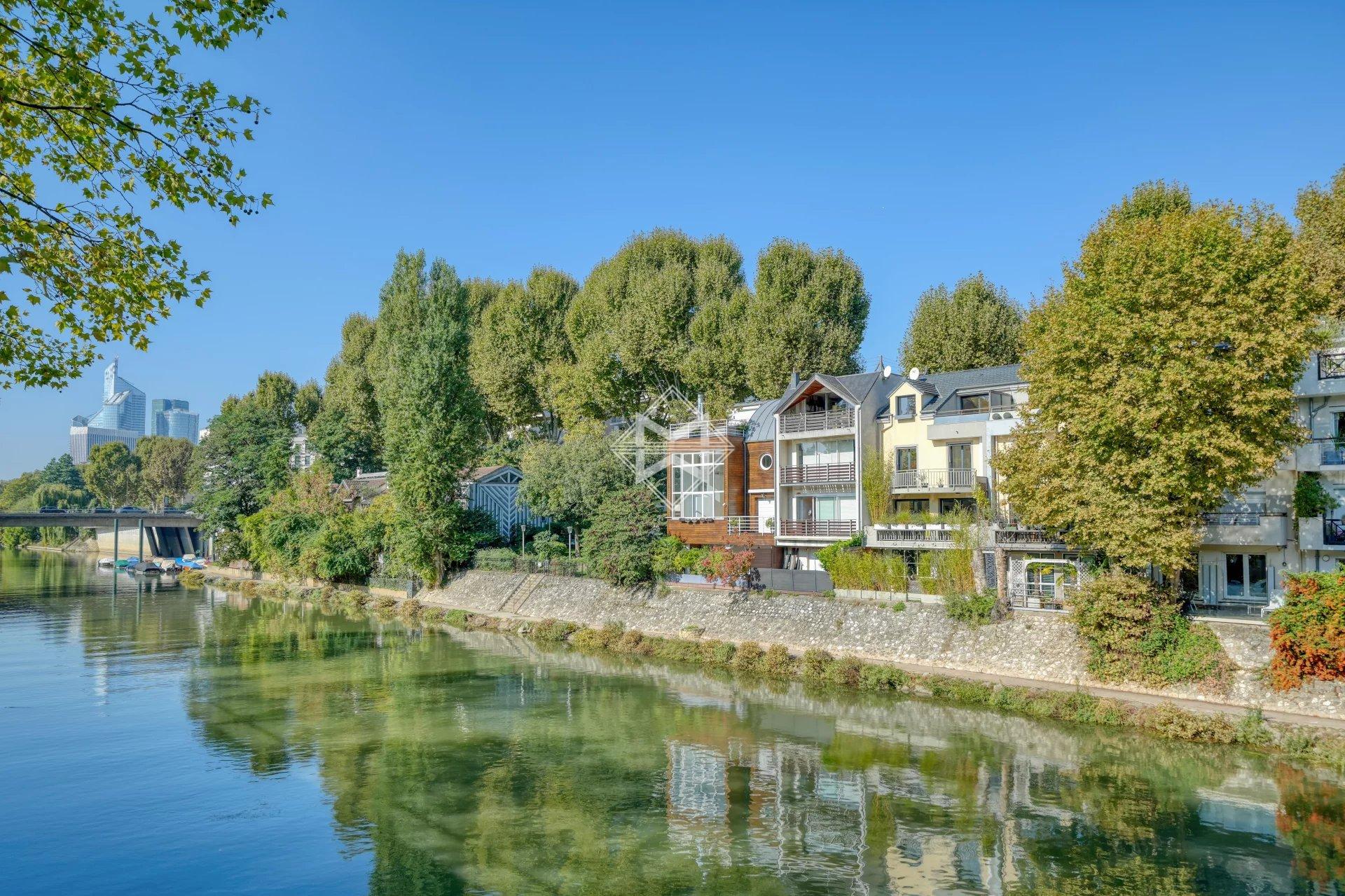 Located on the prestigious Île de la Jatte, this bright contemporary home of approximately 184 m² enjoys panoramic views of the Seine and a southern exposure.