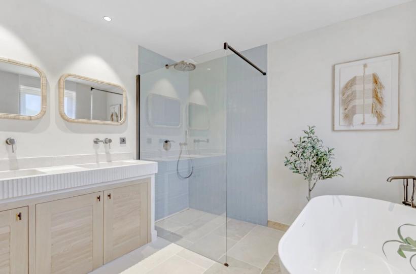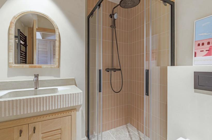 Built on two levels, the house impresses with its high-quality materials and the attention to detail it has given to its decoration. It offers generous volumes, including a spacious living room, a fully equipped open-plan kitchen, a welcoming dining room, and five en-suite bedrooms, combining comfort and privacy.