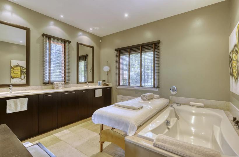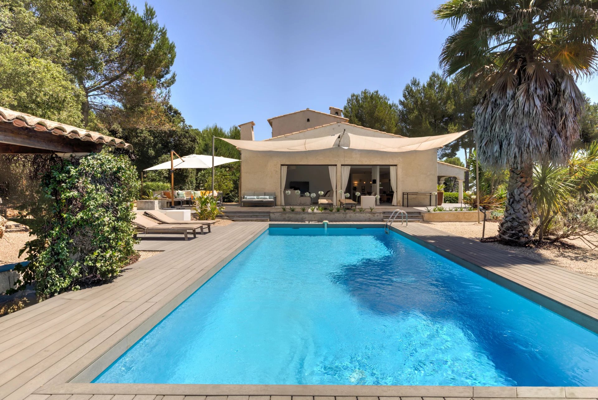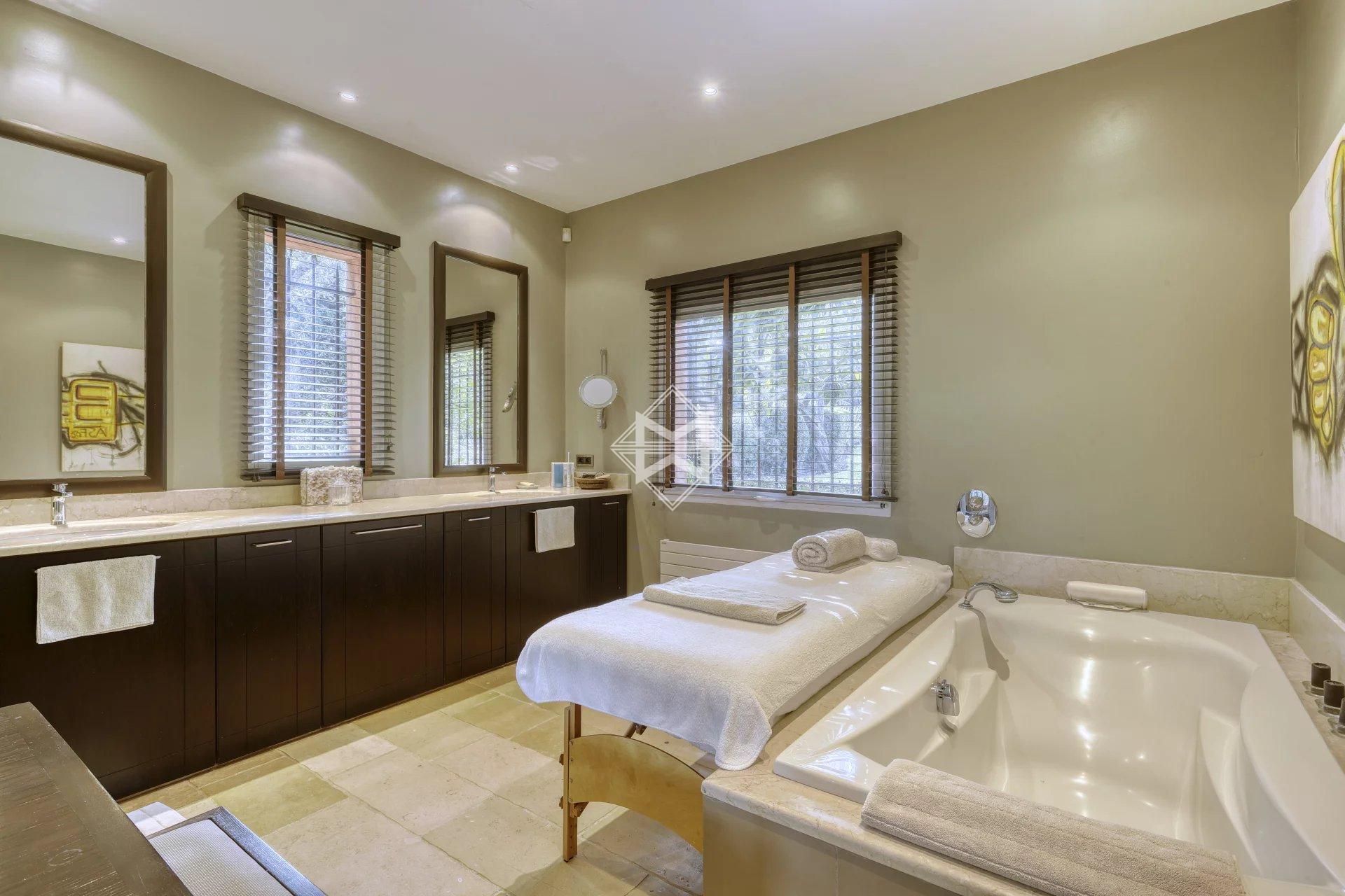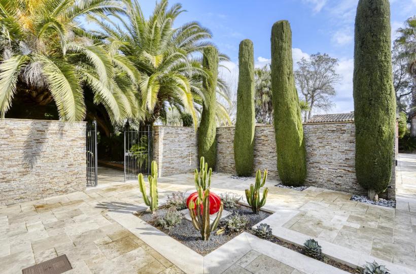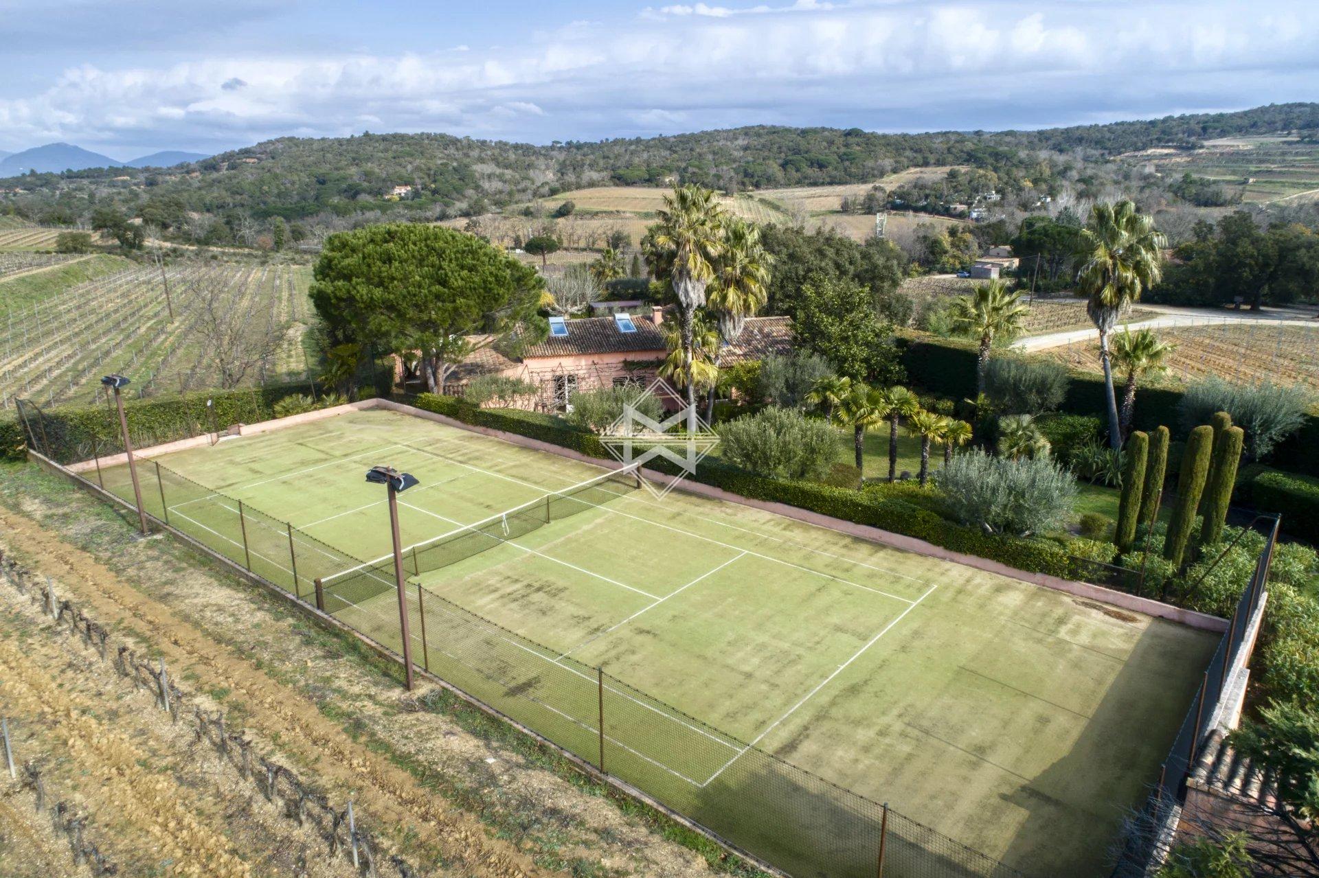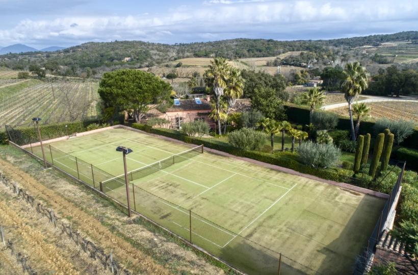 The property is set on a 4066 m2 plot planted with splendid Mediterranean species, a beautiful heated pool, a large patio and a totally private tennis court
