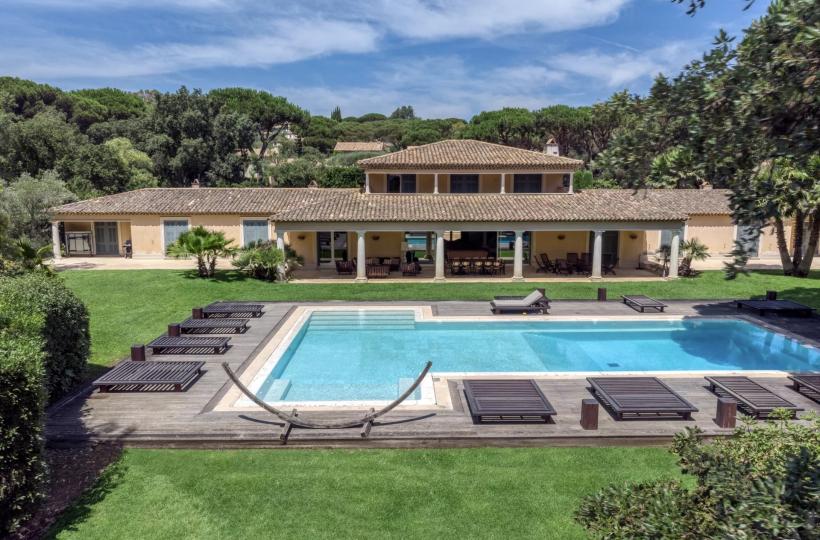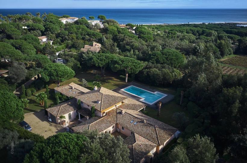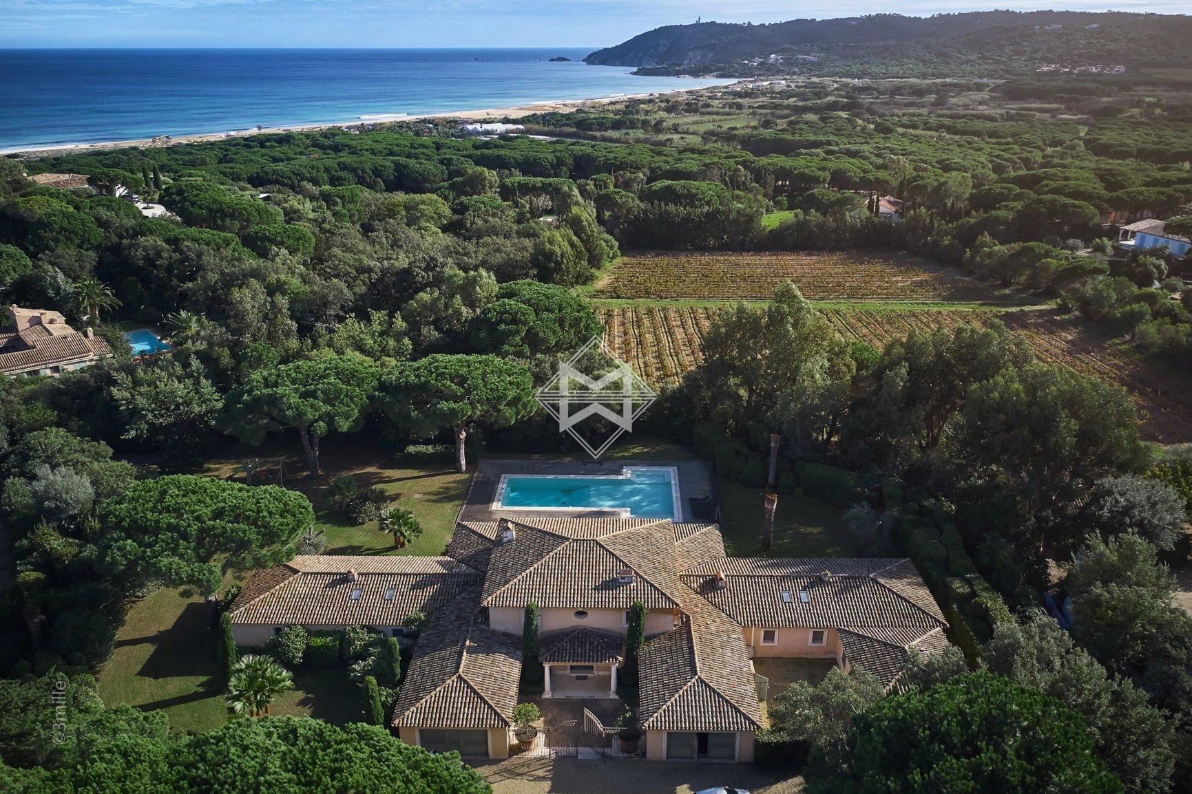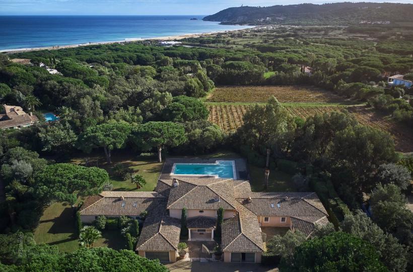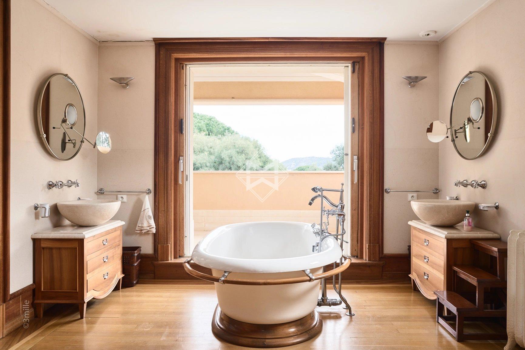 Located just a few hundred meters from the famous Pampelonne beach in Ramatuelle, this superb property stands out with its generous spaces and high-quality materials. The imposing building features an Empire-style decoration that adds a touch of elegance and refinement.