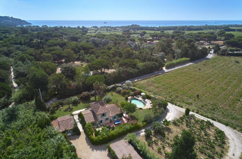 Stategically located close to Pampelonne beach and Saint-Tropez, beautiful character property set on a large flat plot of land of more than 9000 m2 planted with vines.
