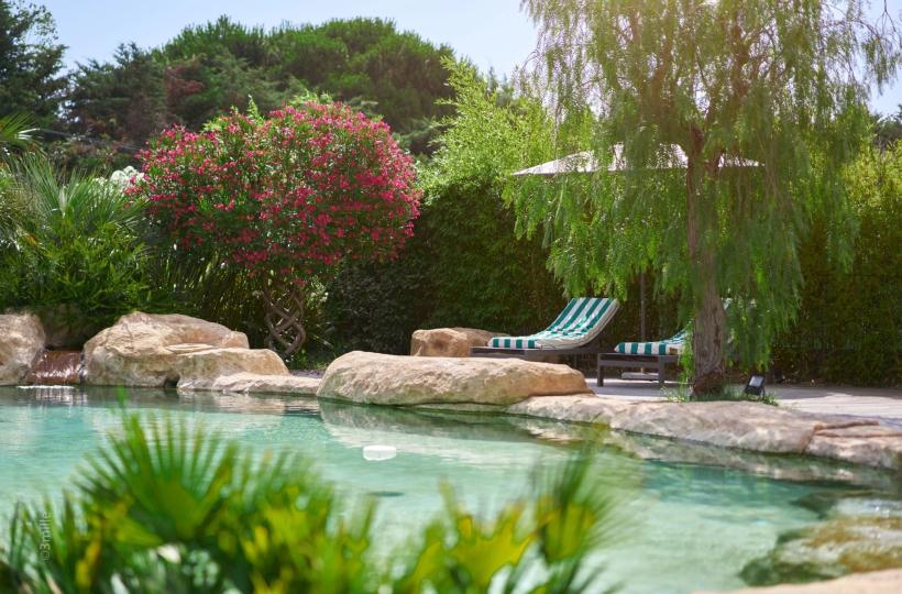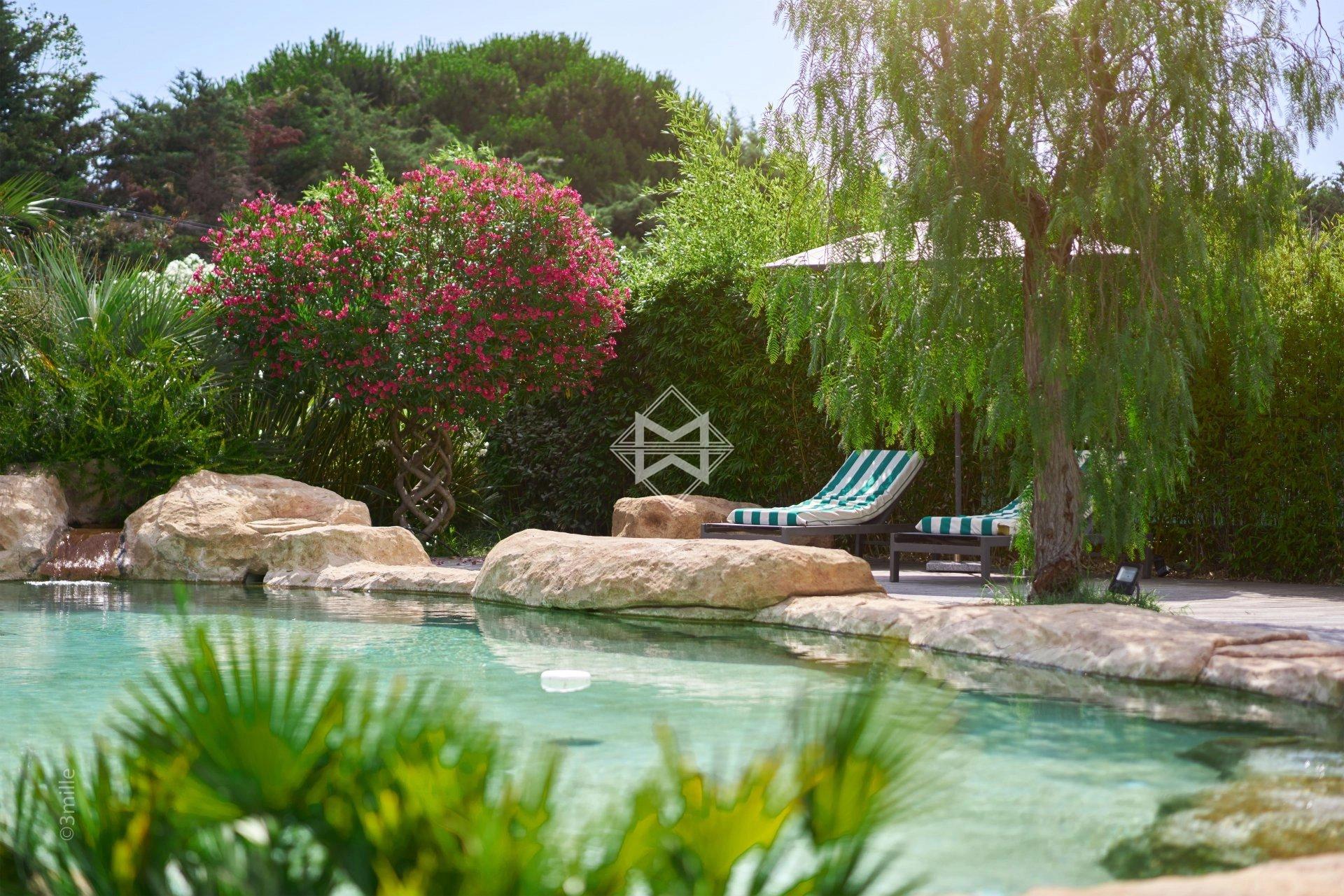 The property offers a "countryside" atmosphere, in a quiet environment hidden from sight, while being close to Saint-Tropez life and the beaches in Ramatuelle.