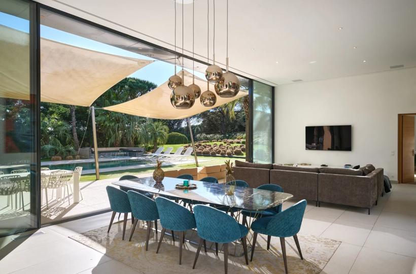 Hidden from sight, this modern property of a surface of approx. 320 m2 is composed, in particular, of a sunny living space, opening onto the terrace and the pool area, and 6 suites.