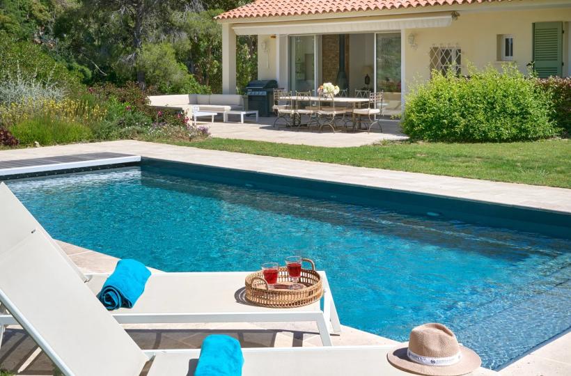 In the heart of a popular address in Rayol-Canadel-sur-Mer, beautiful, quiet property, not overlooked and with sea view.