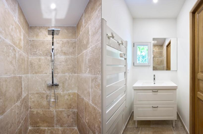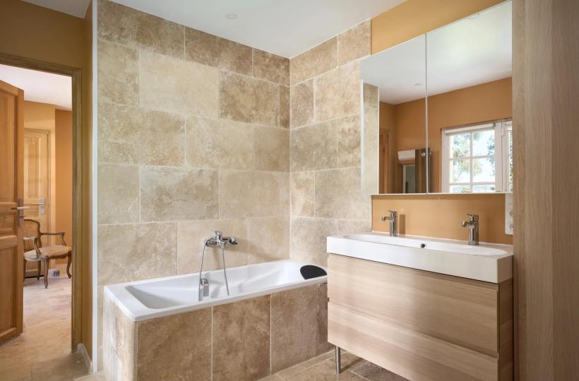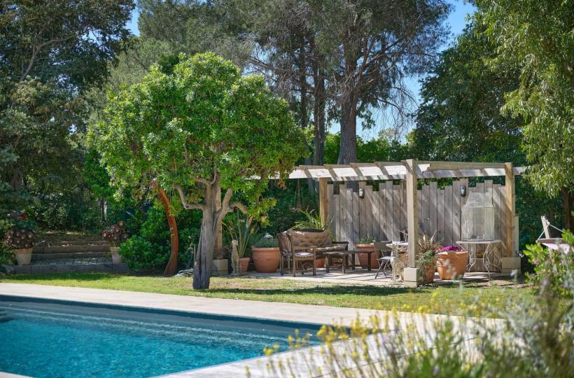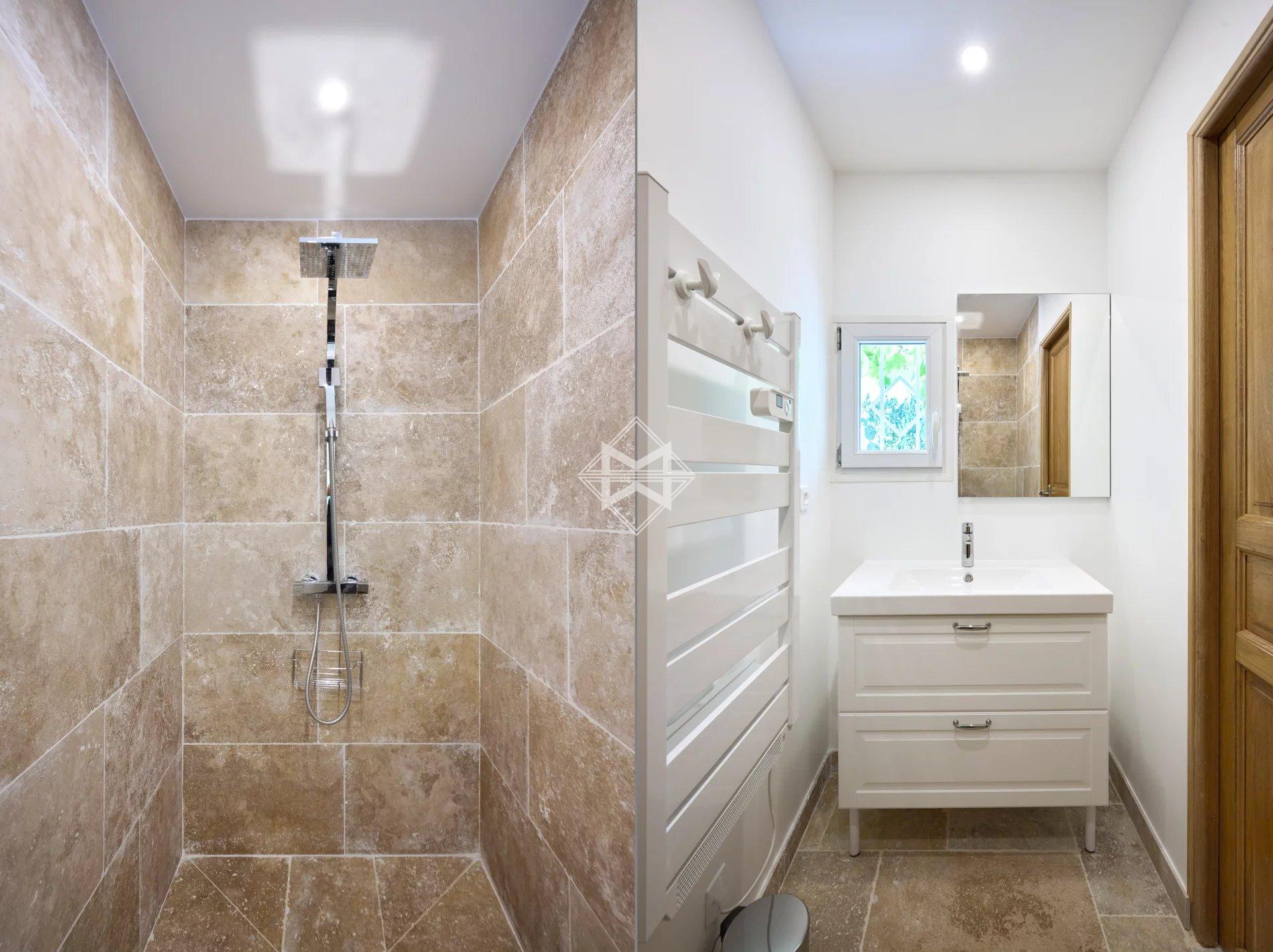 Facing full south, the property is built on completely flat landscaped land with an area of more than 2300m2, decorated with a beautiful 11x4 heated swimming pool and its pool house as well as a pétanque court.