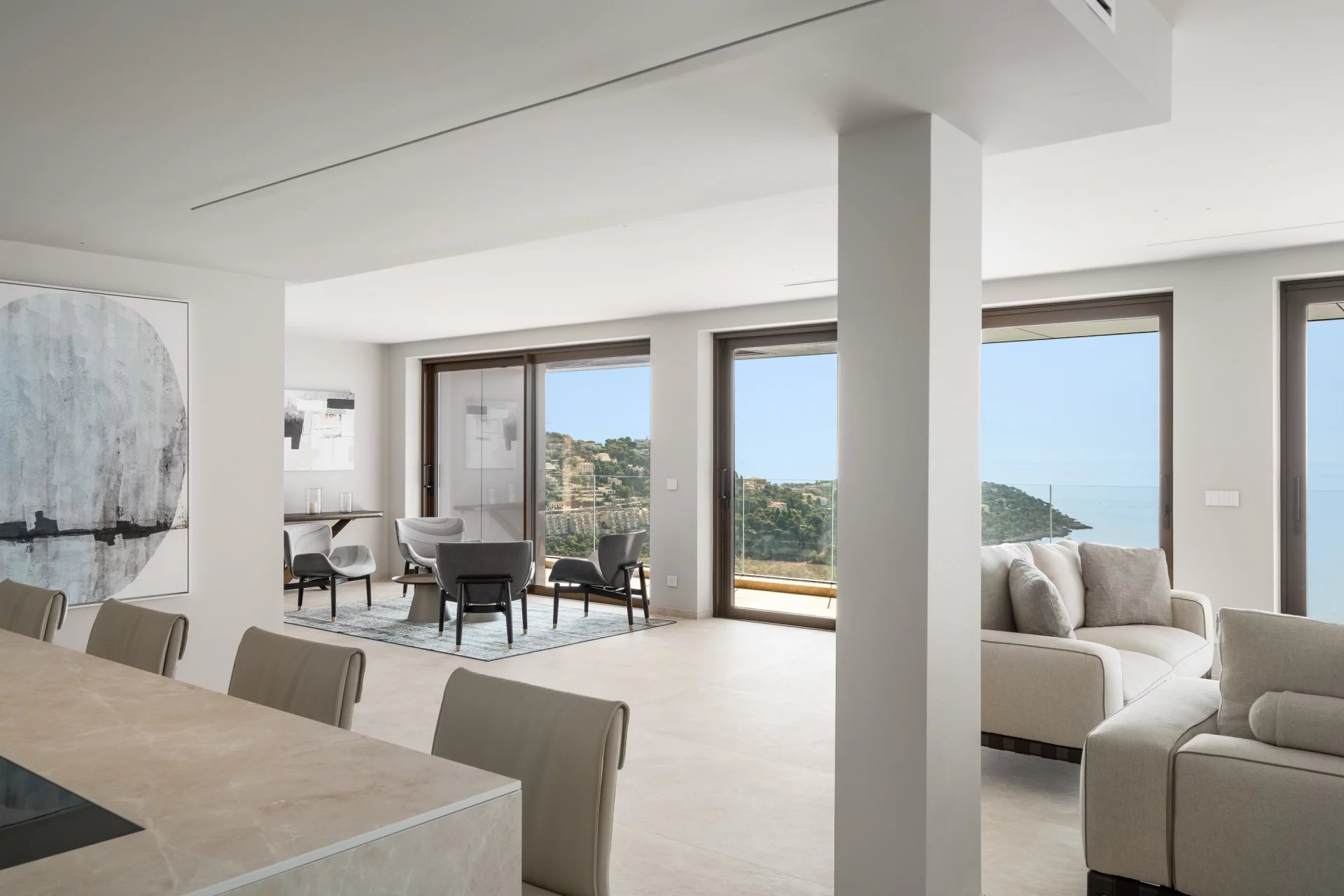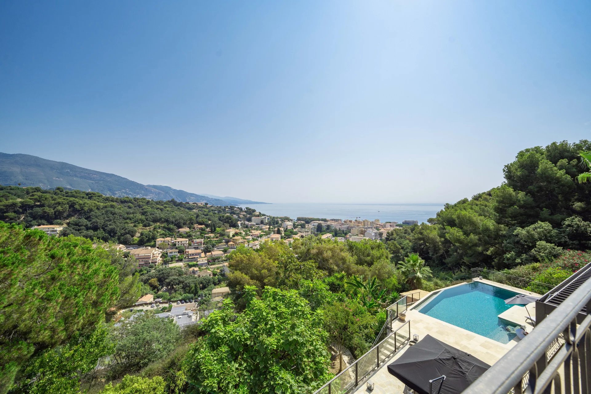 Very beautiful contemporary villa of approximately 300m² with panoramic sea views above the beaches of Roquebrune Cap Martin.