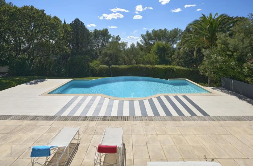 A large swimming pool and its beach extend the ground floor gallery and offer a place for relaxation or reception depending on the occasion. The caretaker's house and the basement offer additional spaces to be renovated and fitted out at the convenience of the future owners.