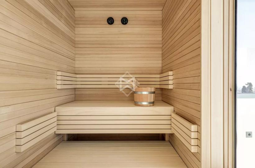 On the lower floor, the property features a 38m² gym and a spa area. The garage can accommodate up to four vehicles, providing both security and convenience.