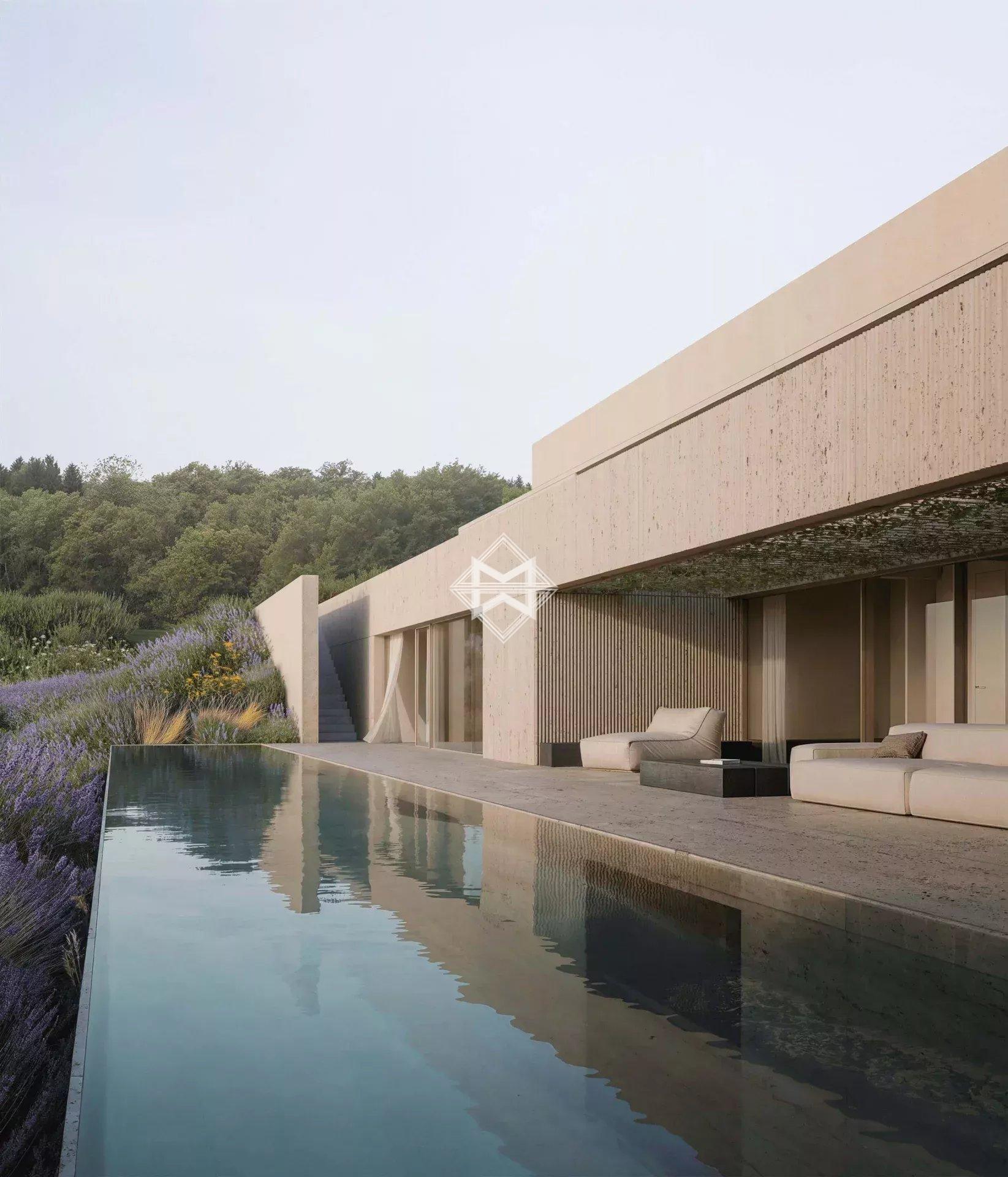 Each level features spacious terraces and beautiful gardens, contributing to local ecosystem conservation and creating a peaceful, sustainable retreat. The design creates a space where daily life can evoke an authentic artistic experience, intertwining landscape and architecture.