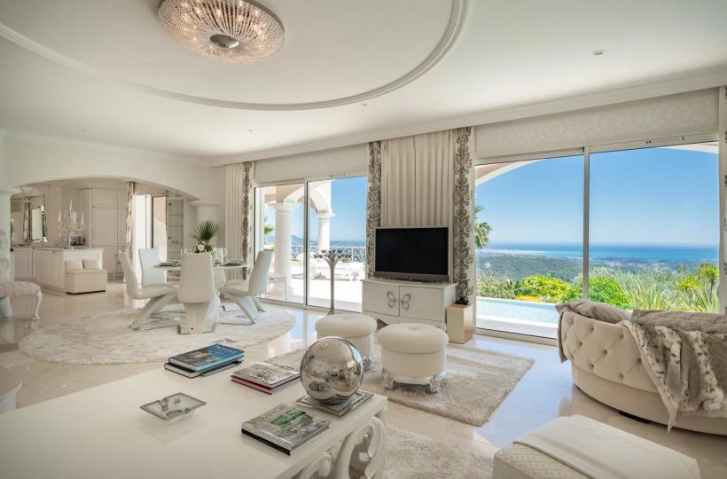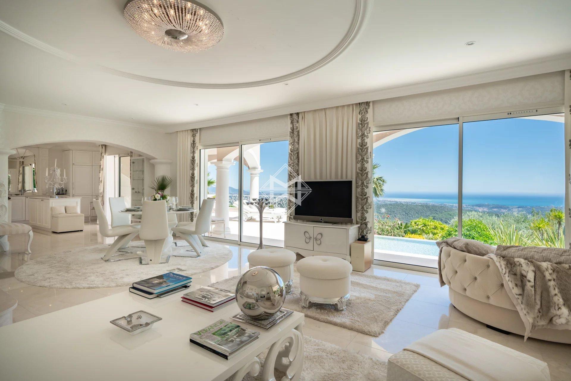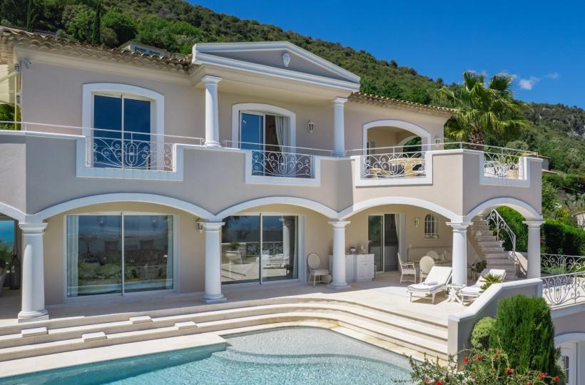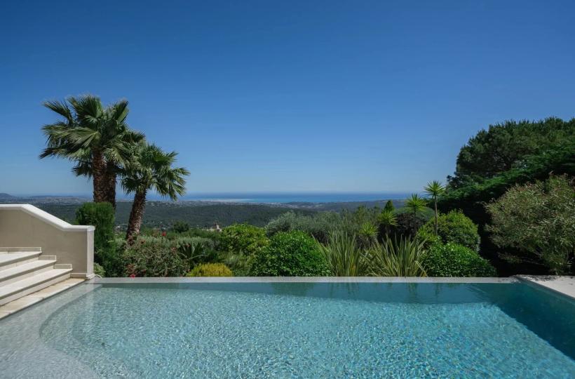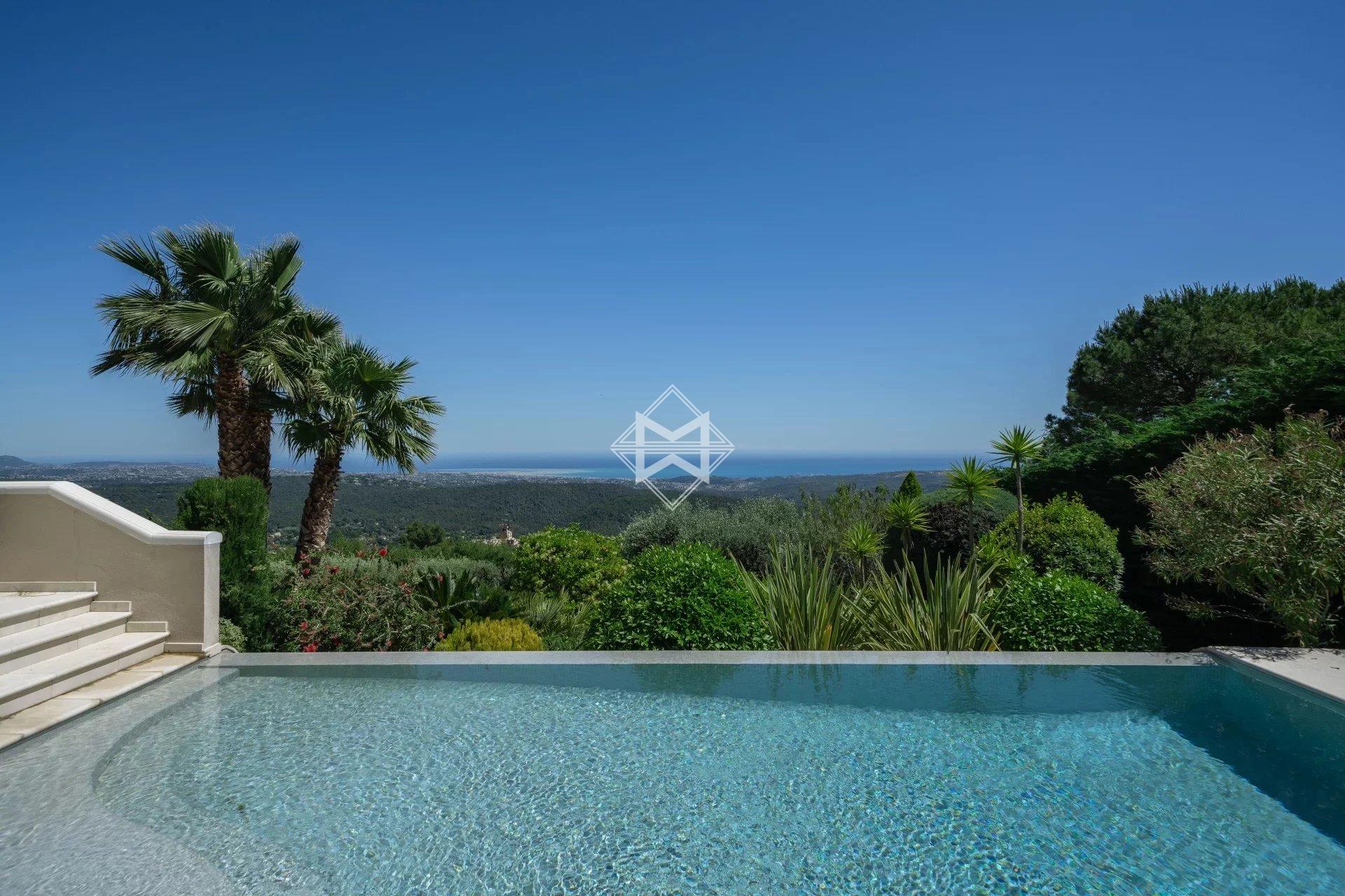 This neo-Provençal villa overlooking the medieval village of Tourrettes-sur-Loup offers exceptional views stretching from Cap Ferrat to Cap d'Antibes.